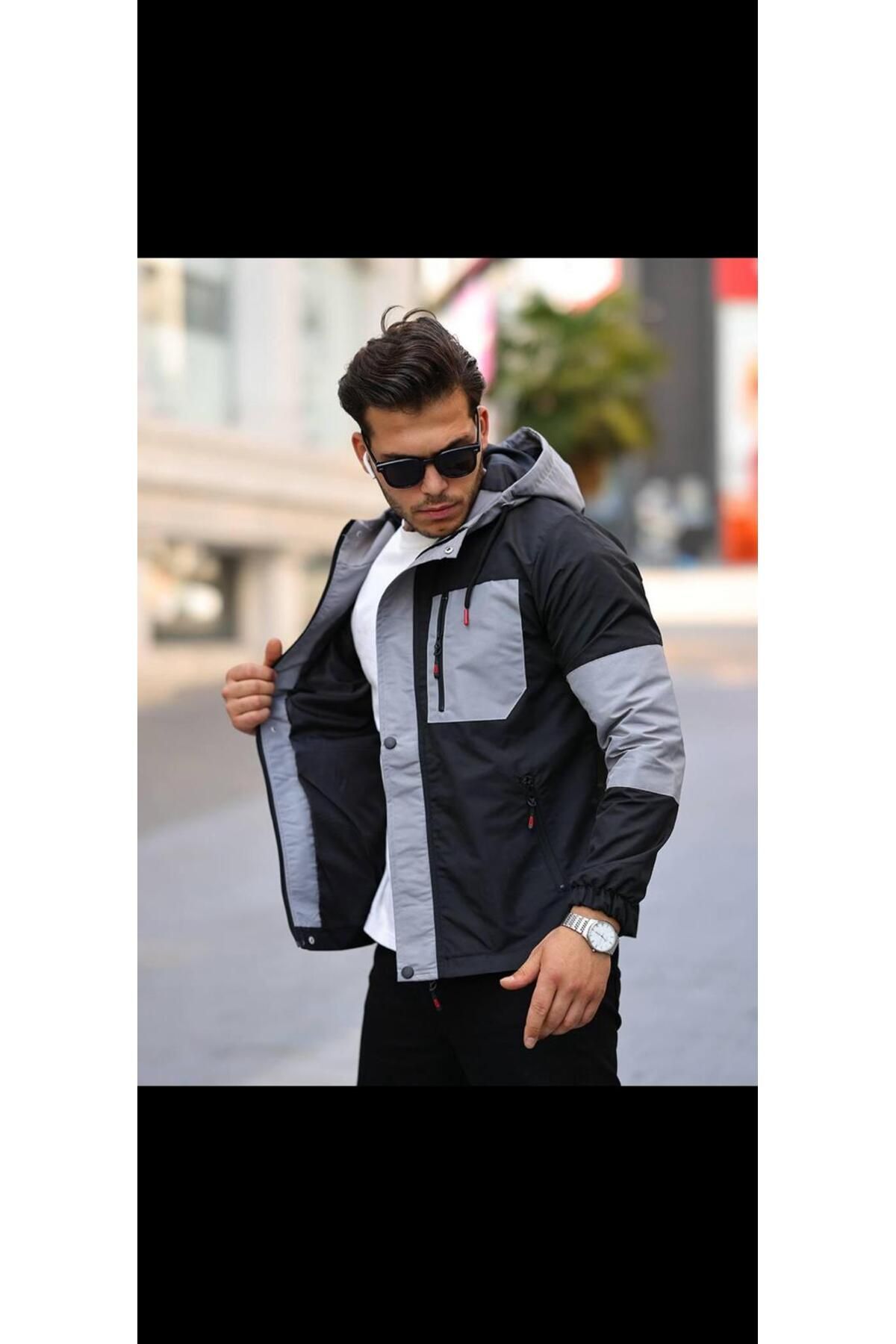 Erkek Siyah Su Geçirmez Kapüşonlu Spor Ceket Erkek Siyah Su Geçirmez Kapüşonlu Spor Ceket 1596 2XL