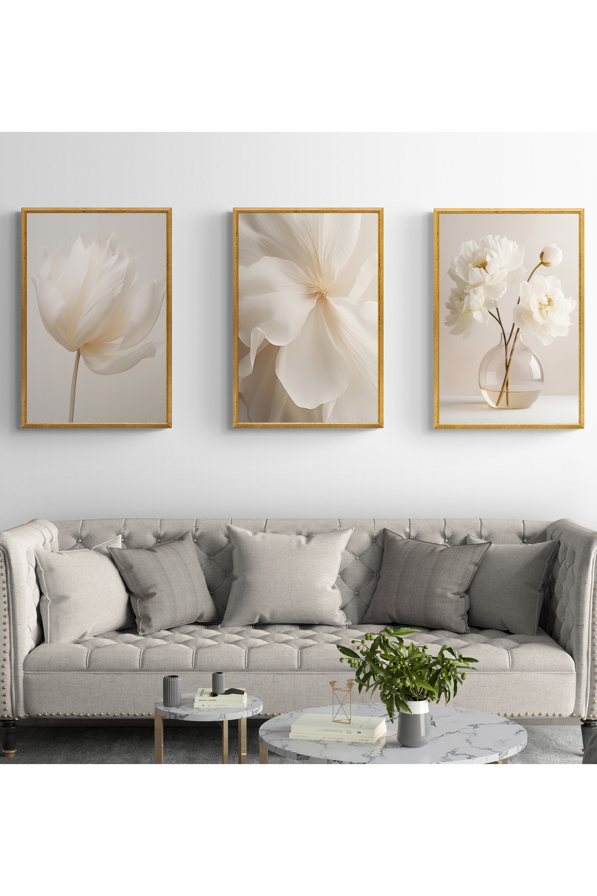 Çerçeveli Ahşap Tablo , Beyaz Gold Çiçek Desenleri Çerçeveli Ahşap Tablo , Beyaz Gold Çiçek Desenleri TEK3PBYZ15CK 70 x 50