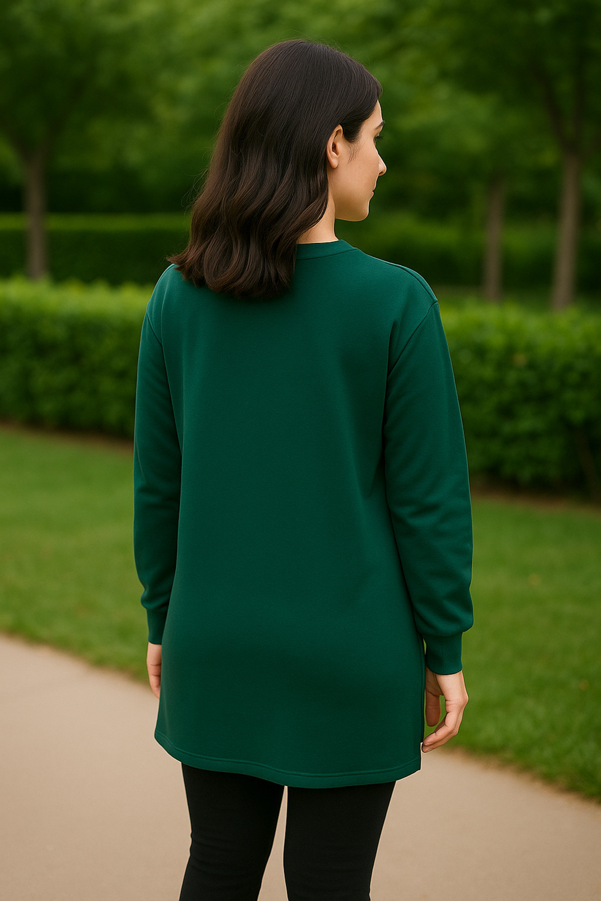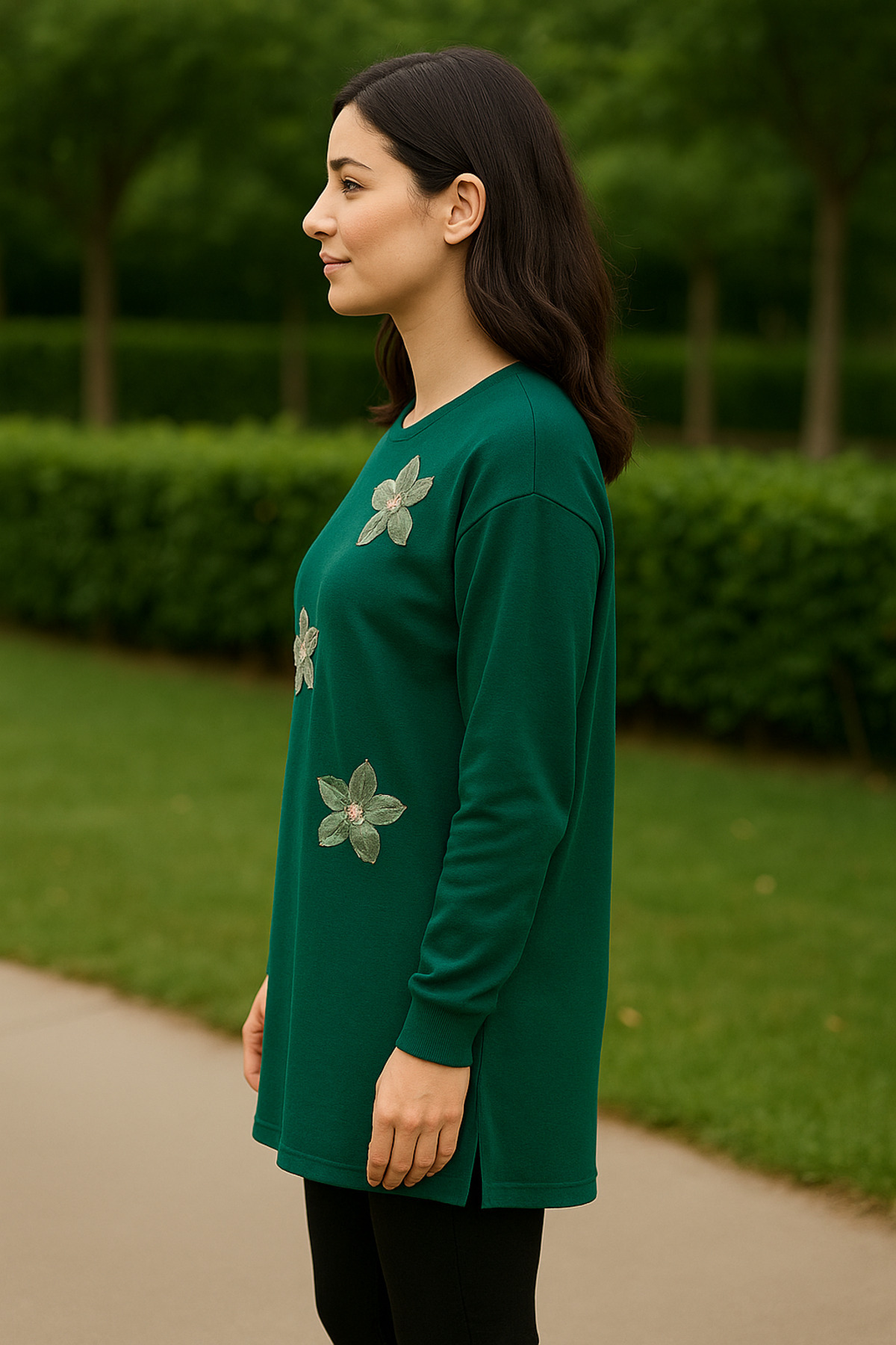 Kadın Zümrüt Yeşili Yırtmaçlı Çiçek Aksesuarlı Tunik Kadın Zümrüt Yeşili Yırtmaçlı Çiçek Aksesuarlı Tunik BTÇÇK 2XL