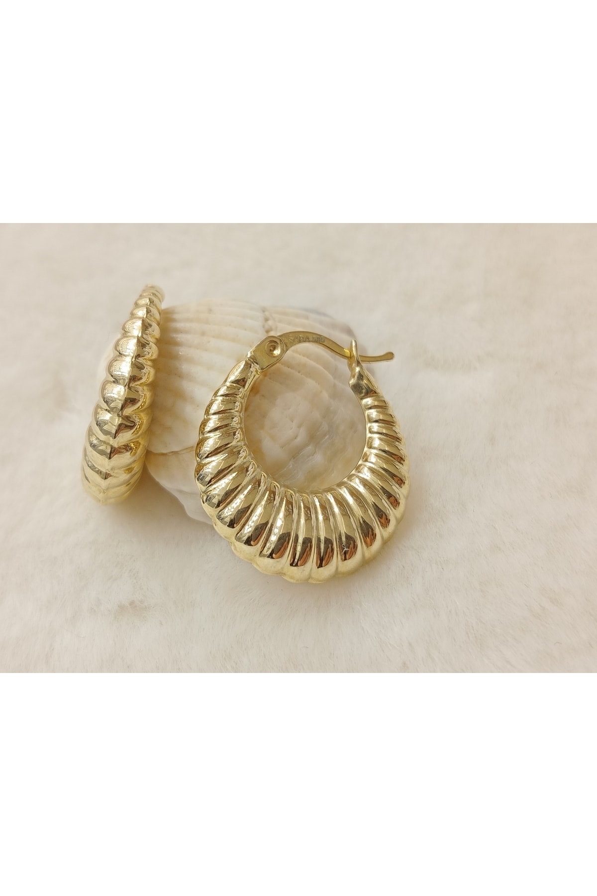 14 Ayar Çizgili Halka Altın Küpe 14 Ayar Çizgili Halka Altın Küpe 14KUP1886 تک سایز
