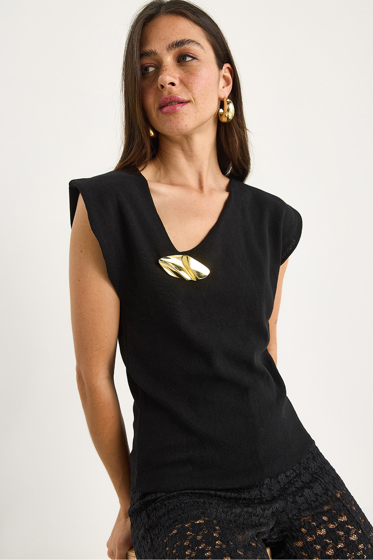 Kadın Aksesuar Detaylı Düşük Omuz Triko Bluz 20251023 Kadın Aksesuar Detaylı Düşük Omuz Triko Bluz 20251023 Standart