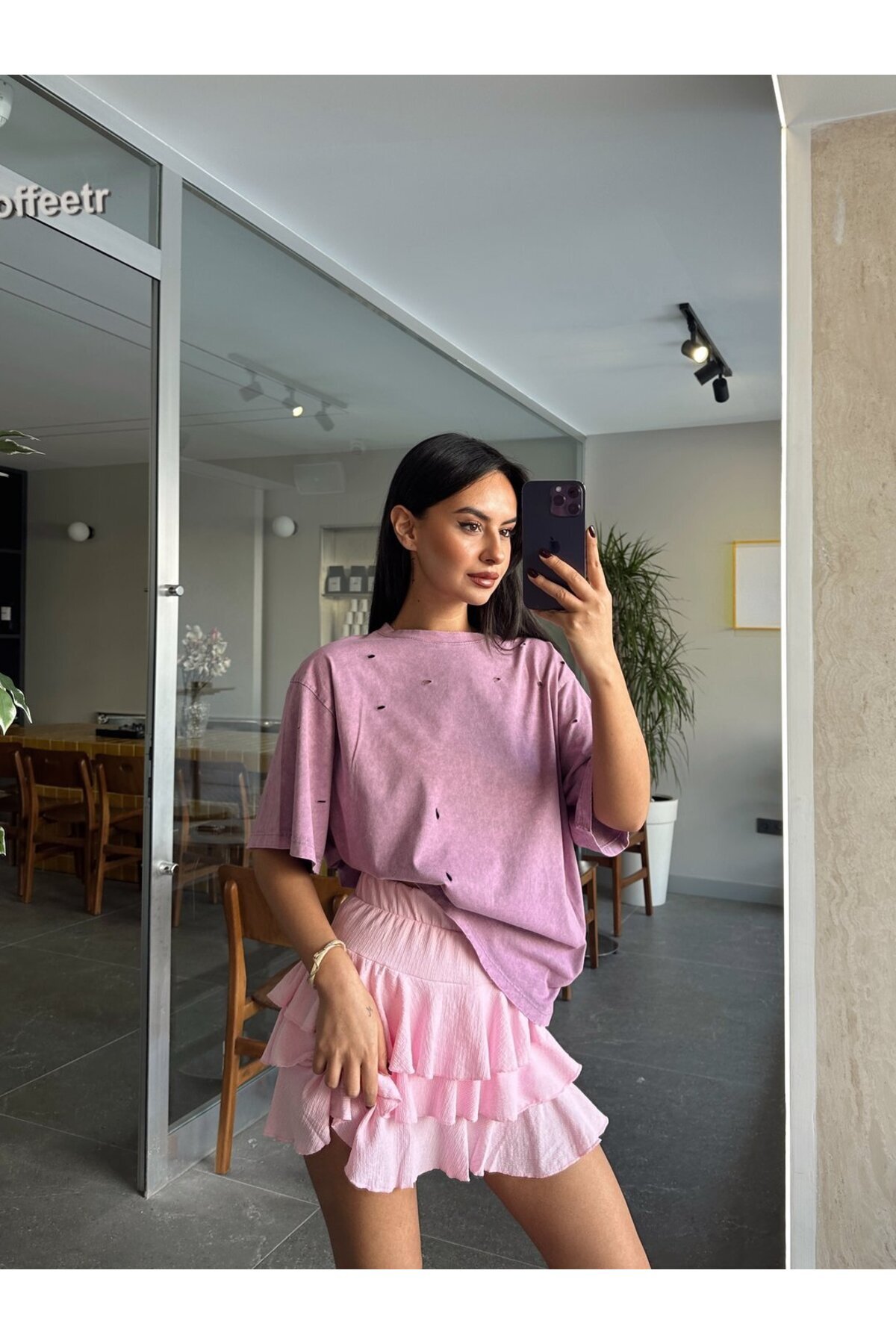 Delikli Yıkama T-shirt Delikli Yıkama T-shirt MYD4621 Standart