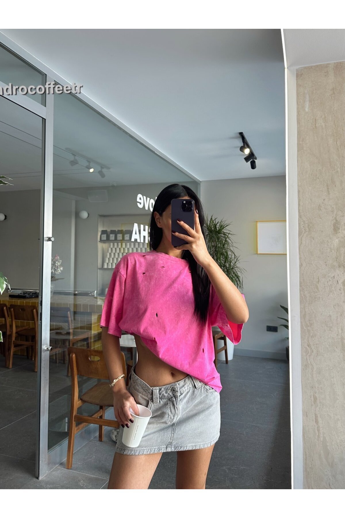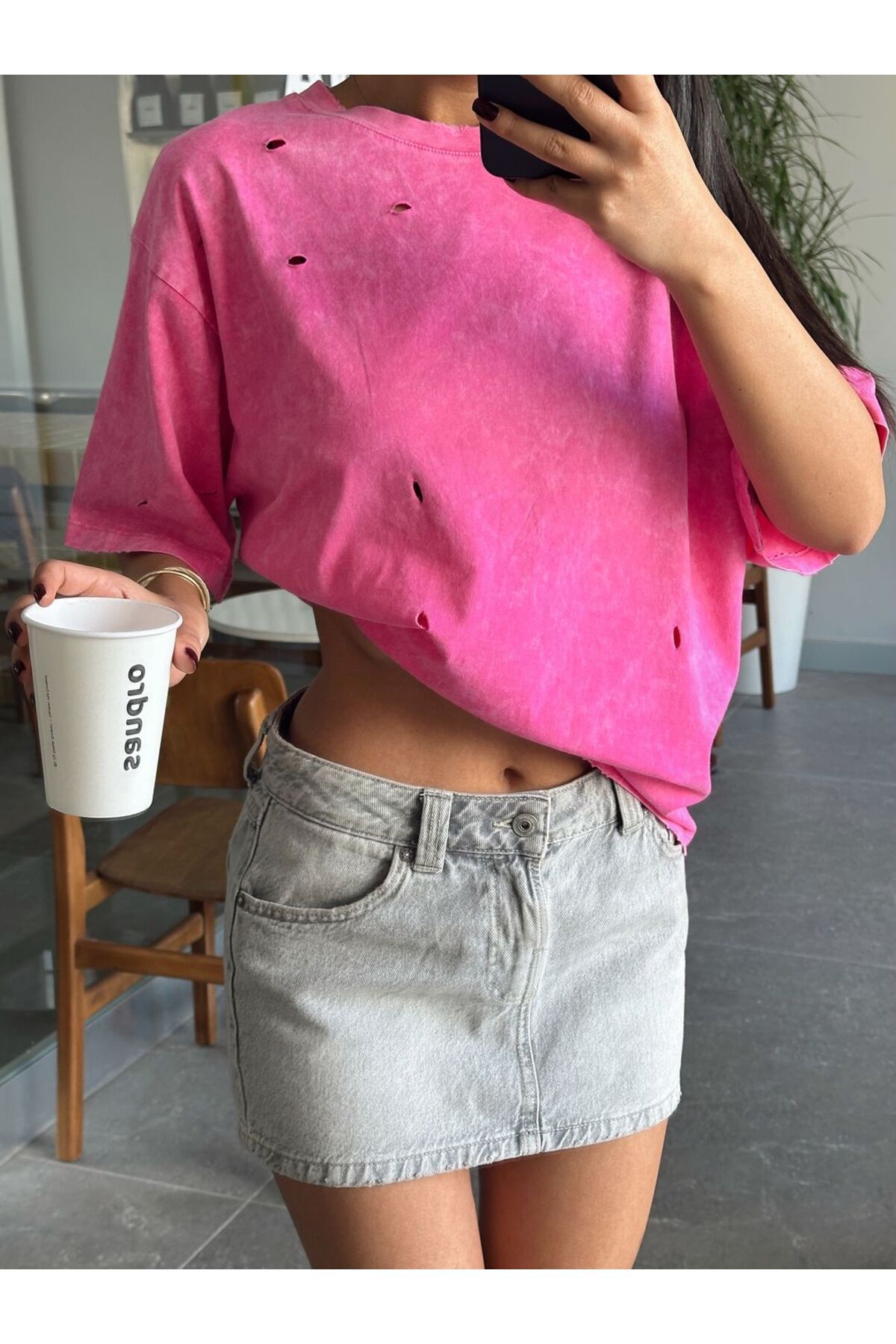 Delikli Yıkama T-shirt Delikli Yıkama T-shirt MYD4621 Standart