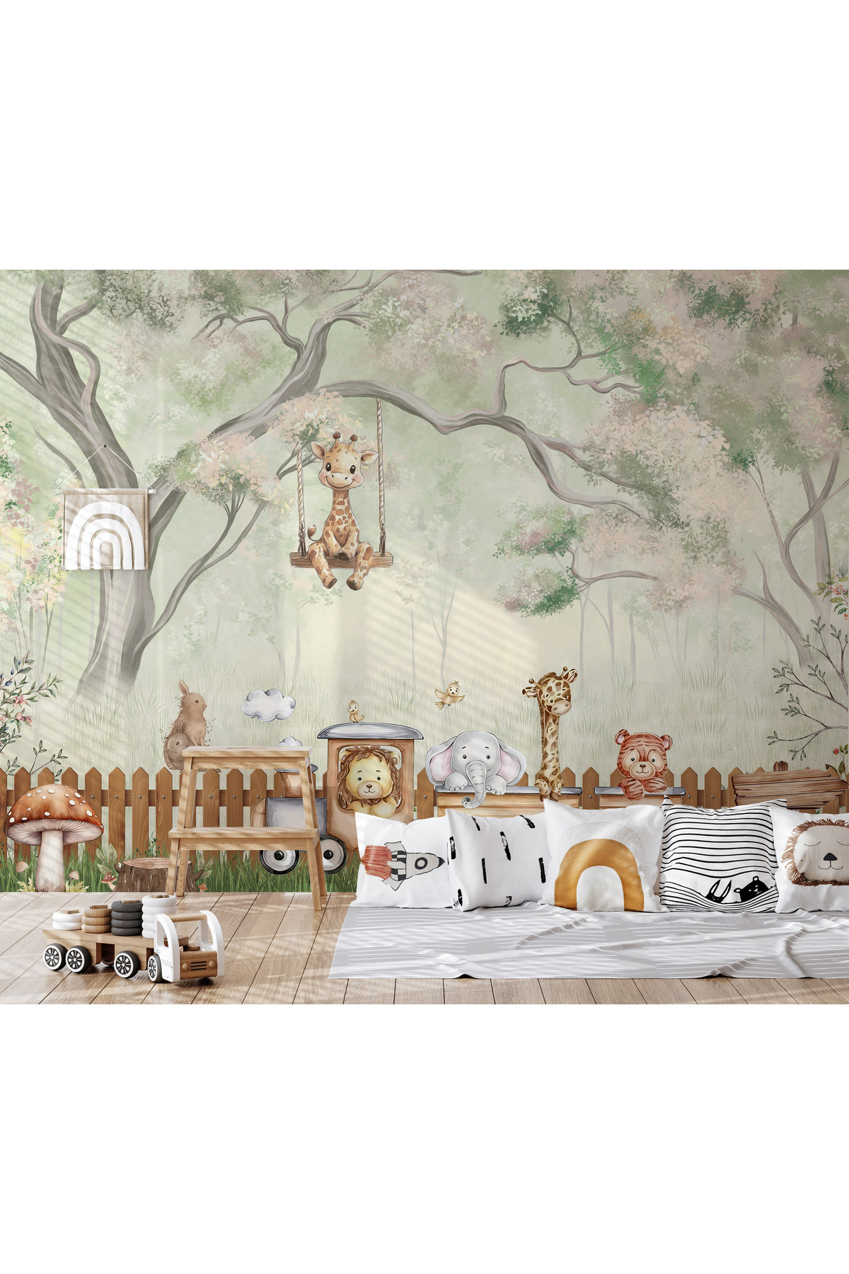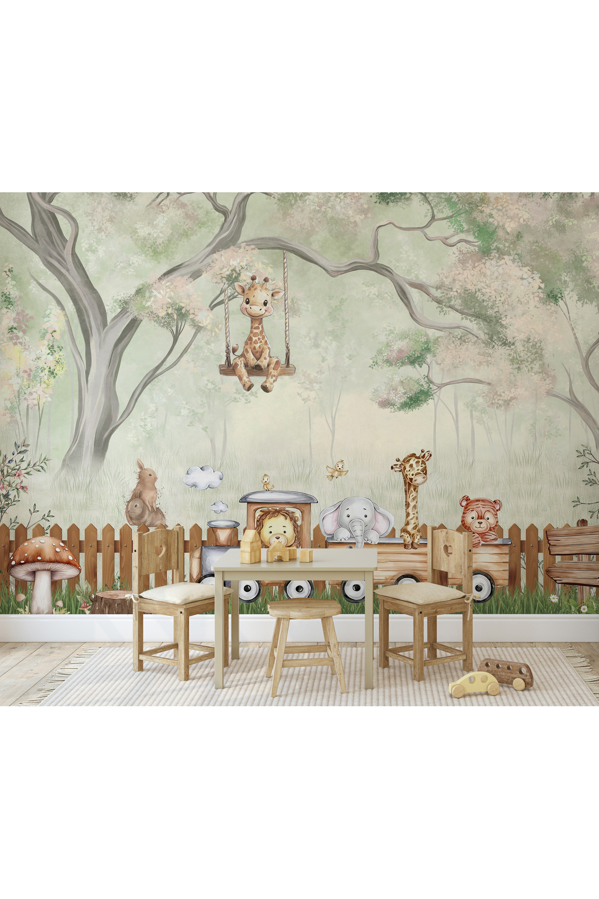 Yeşil Orman Trendeki Sevimli Hayvanlar ve Salıncaktaki Zürafa Çocuk Odası Duvar Kağıdı Yeşil Orman Trendeki Sevimli Hayvanlar ve Salıncaktaki Zürafa Çocuk Odası Duvar Kağıdı Kid_24767 250 x 170