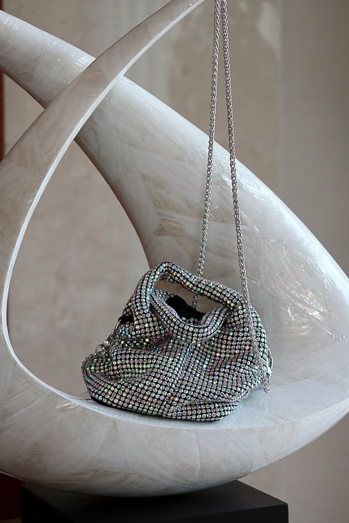 Kadın RGB Taşlı Çift Saplı Zincirli Abiye Çanta Kadın RGB Taşlı Çift Saplı Zincirli Abiye Çanta MB000480 تک سایز