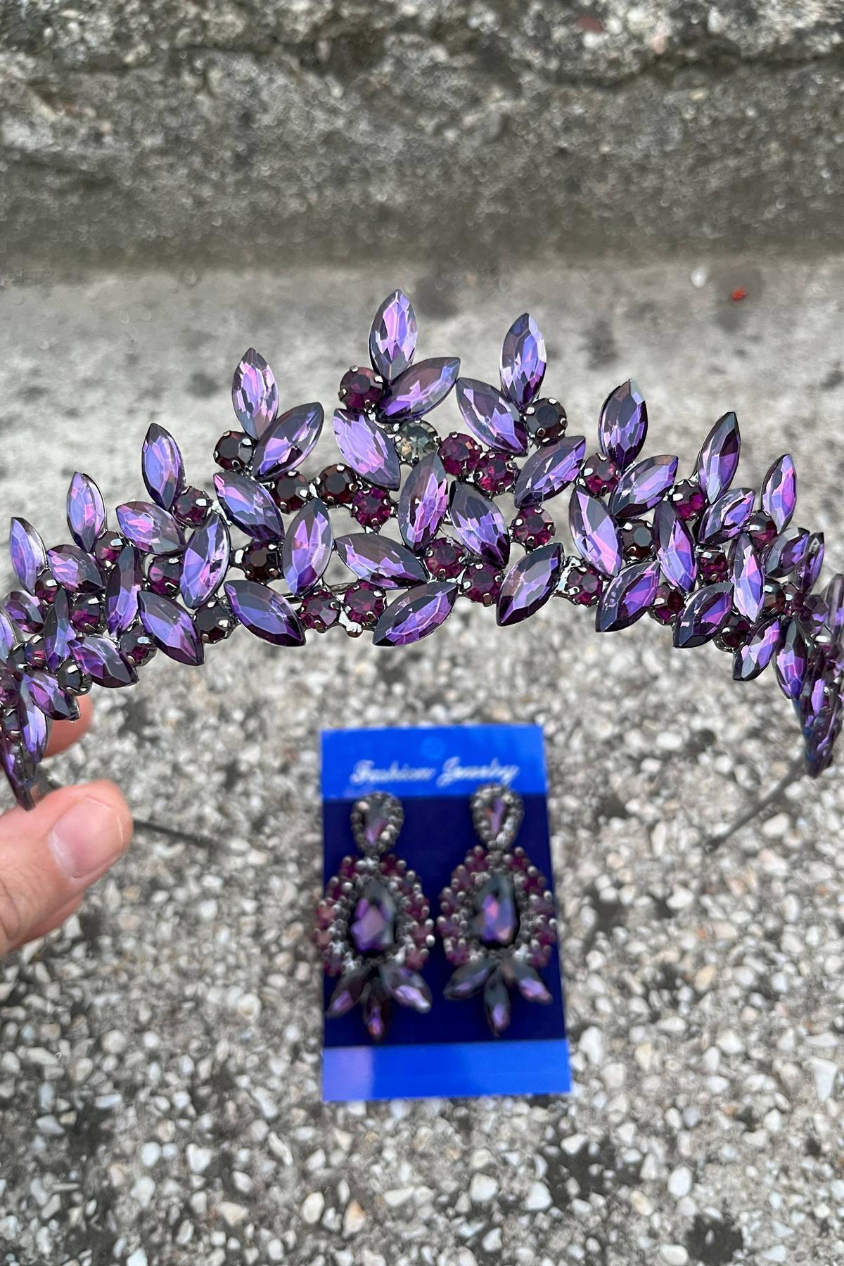 Regina Gold Gelin Kına Tacı Özel Gün Aksesuar Kadın Taç Ve Üç Mekik Küpe Takımı – Taç, Kristal Taşlı