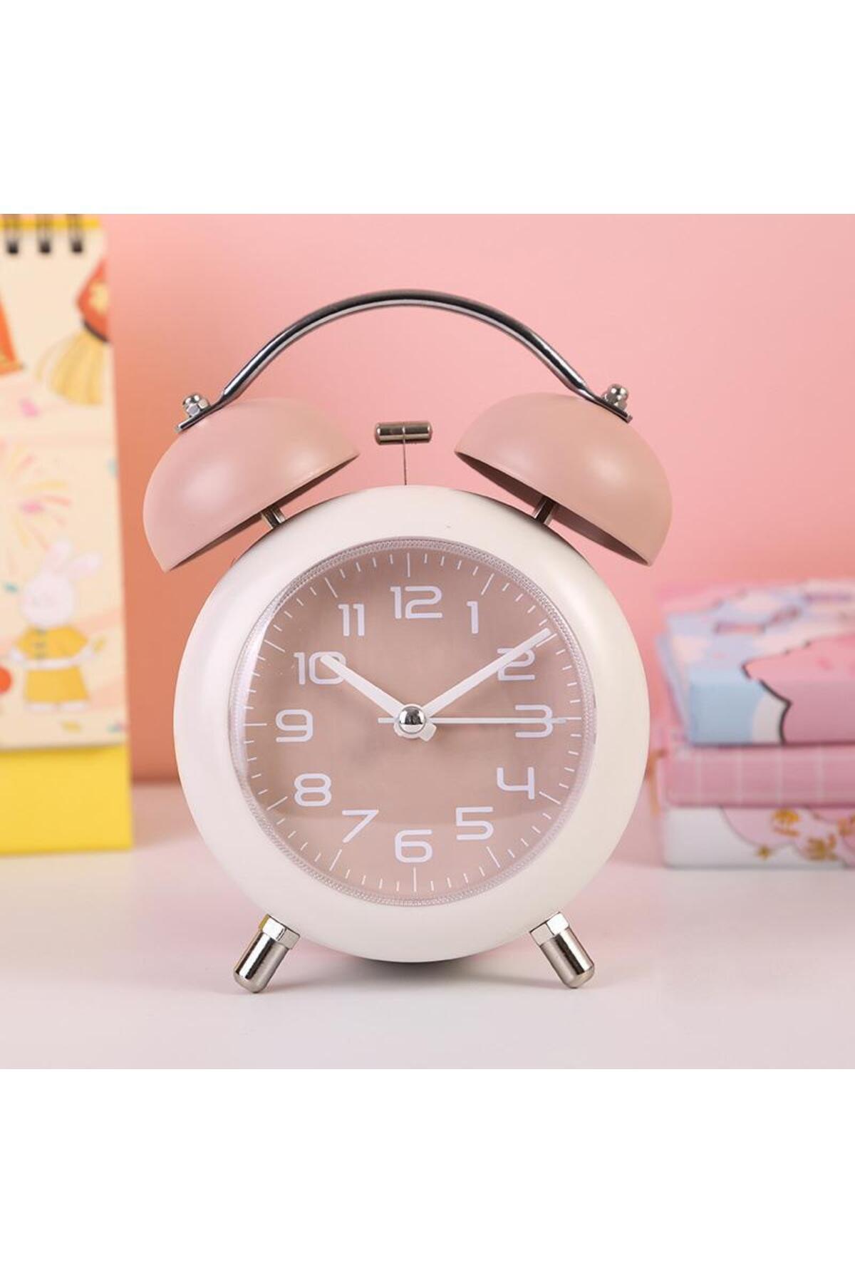 Akar Saniyeli Analog Yüksek Sesli Şirin Masa Saati Alarmlı Işıklı Dakik Çift Çanlı Pembe Akar Saniyeli Analog Yüksek Sesli Şirin Masa Saati Alarmlı Işıklı Dakik Çift Çanlı Pembe F18mavi تک سایز
