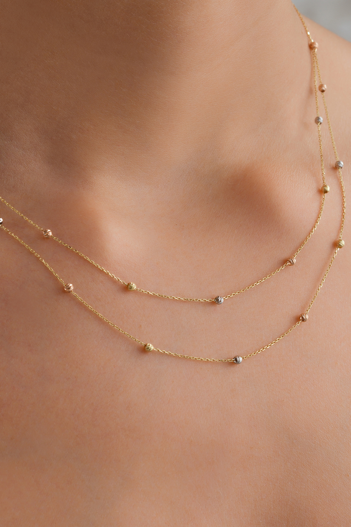 14 Ayar Dorika Toplu İkili Altın Kolye Toplar Üç Renk 14 Ayar Dorika Toplu İkili Altın Kolye Toplar Üç Renk KRD-KLYDR654 45 cm