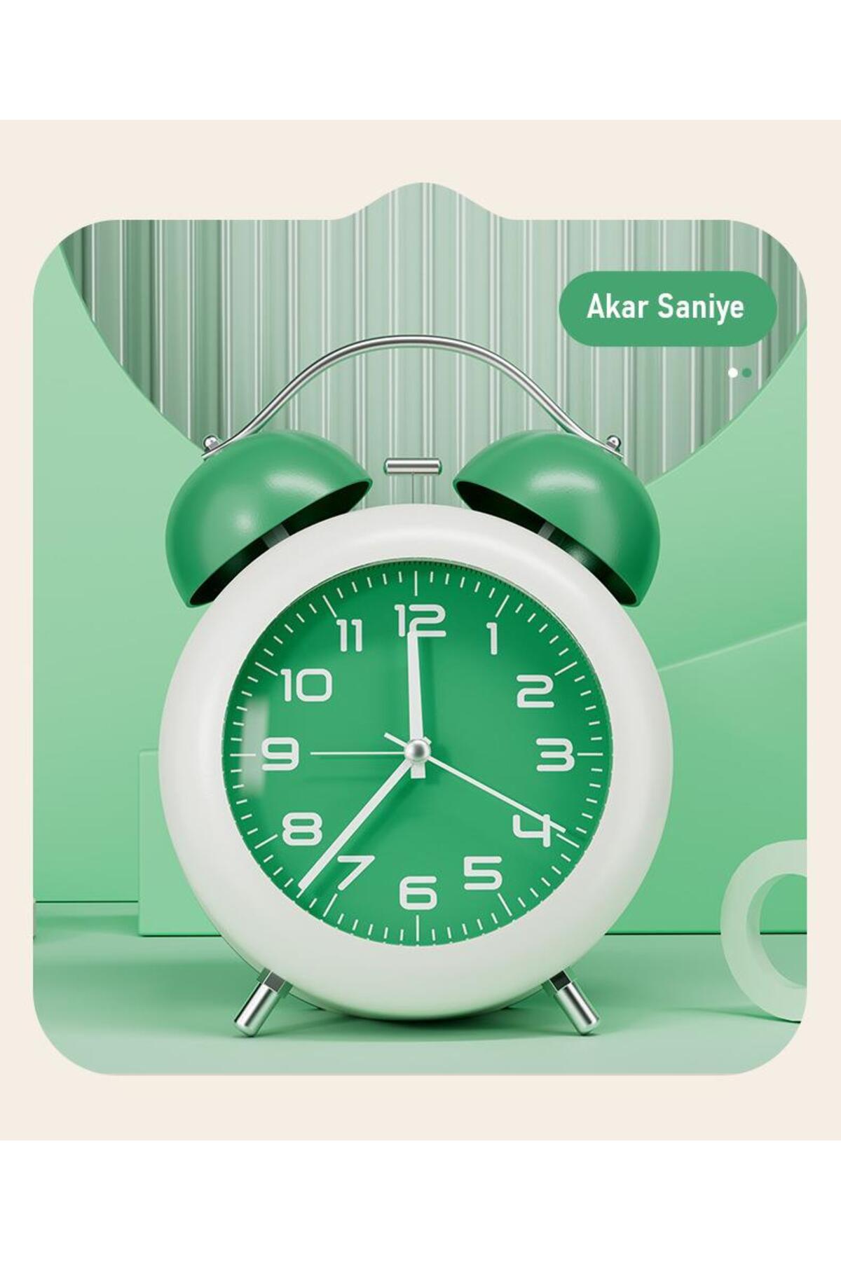 Akar Saniyeli Analog Yüksek Sesli Şirin Masa Saati Alarmlı Işıklı Dakik Çift Çanlı Yeşil Akar Saniyeli Analog Yüksek Sesli Şirin Masa Saati Alarmlı Işıklı Dakik Çift Çanlı Yeşil F18mavi تک سایز