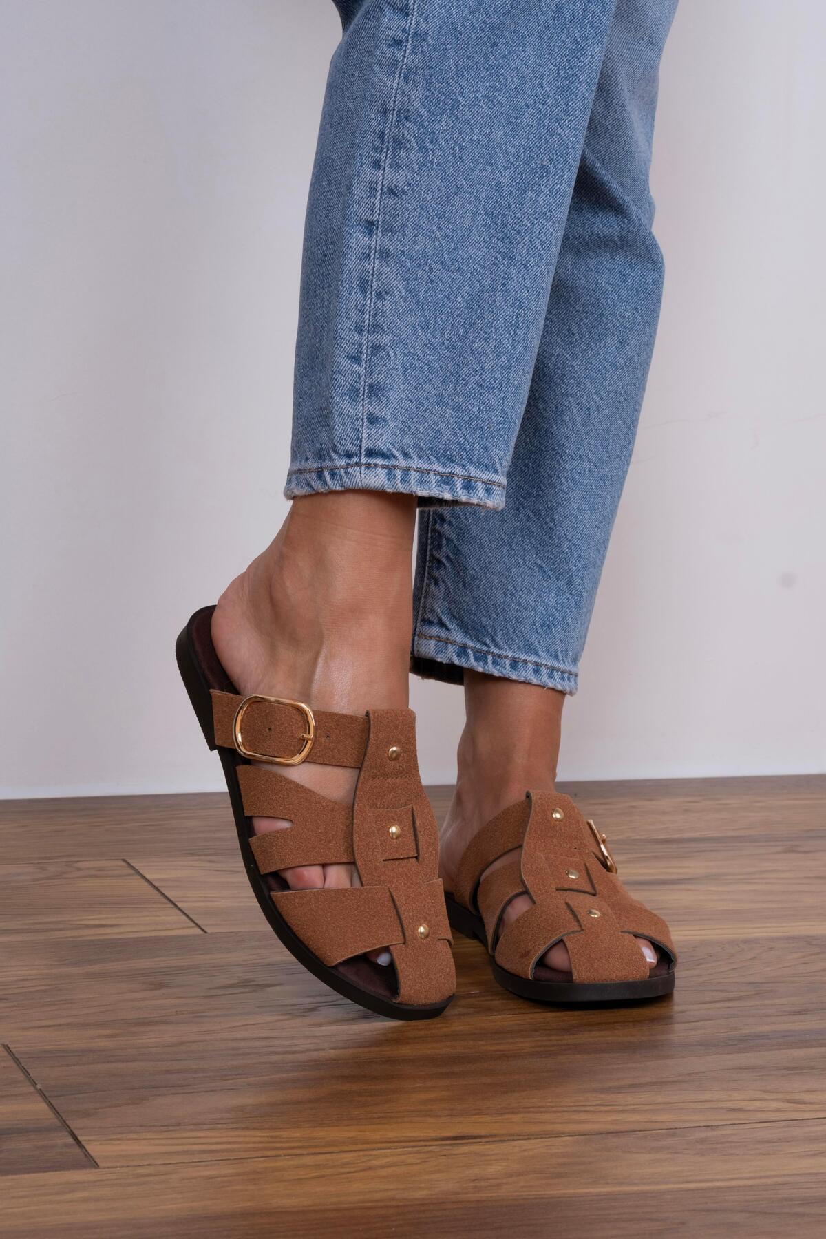 Kemer Detaylı Terlik Taba Süet Kemer Detaylı Terlik Taba Süet R76 40