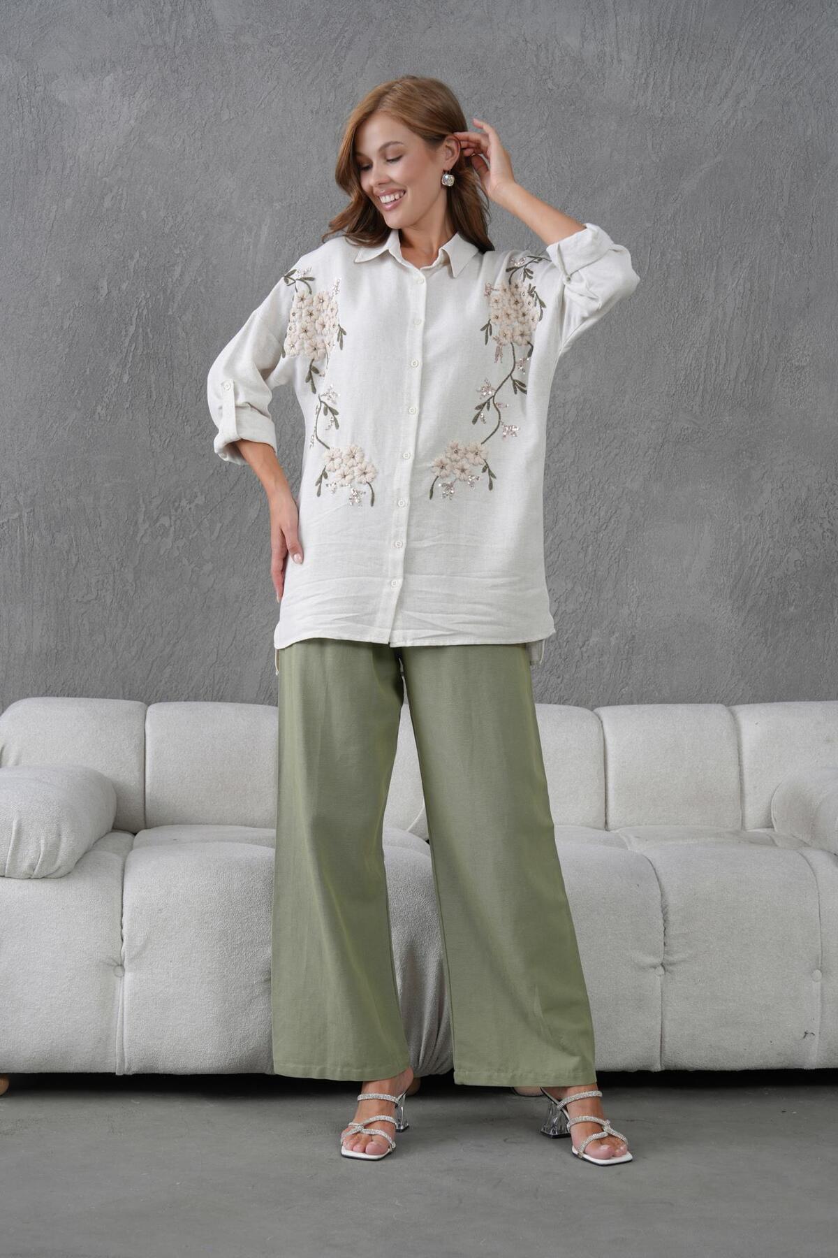 NAKIŞ İŞLEMELİ TAŞLI KETEN TAKIM NAKIŞ İŞLEMELİ TAŞLI KETEN TAKIM 117330 XL