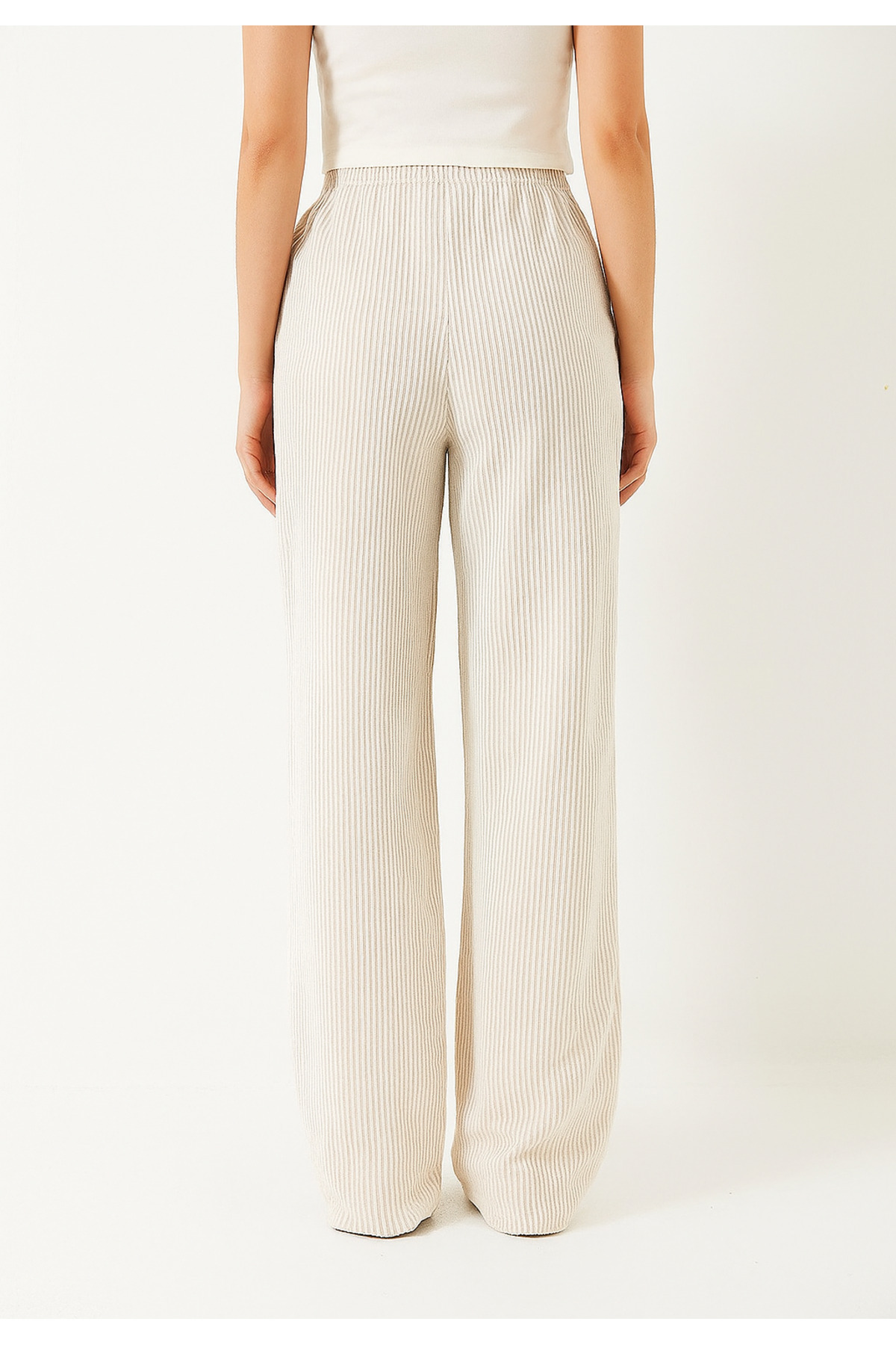 Butter Yellow/Sarı Beli Lastikli Çizgili Esnek Kadın Pantolon Butter Yellow/Sarı Beli Lastikli Çizgili Esnek Kadın Pantolon Dik Çizgili Pantolon XL