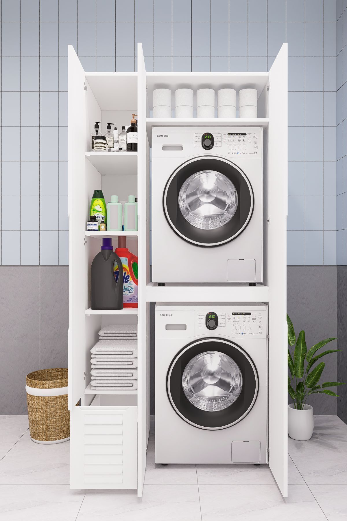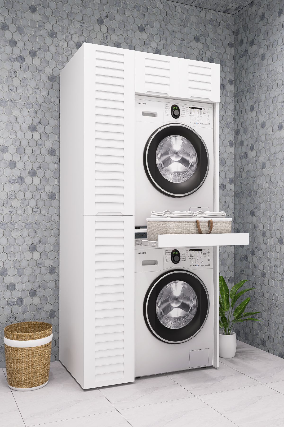 Mdf Çamaşır Makinesi ve Kurutma Makinesi Dolabı kapaklı çekmeceli lake panjur kapak Mdf Çamaşır Makinesi ve Kurutma Makinesi Dolabı kapaklı çekmeceli lake panjur kapak klake1001 تک سایز