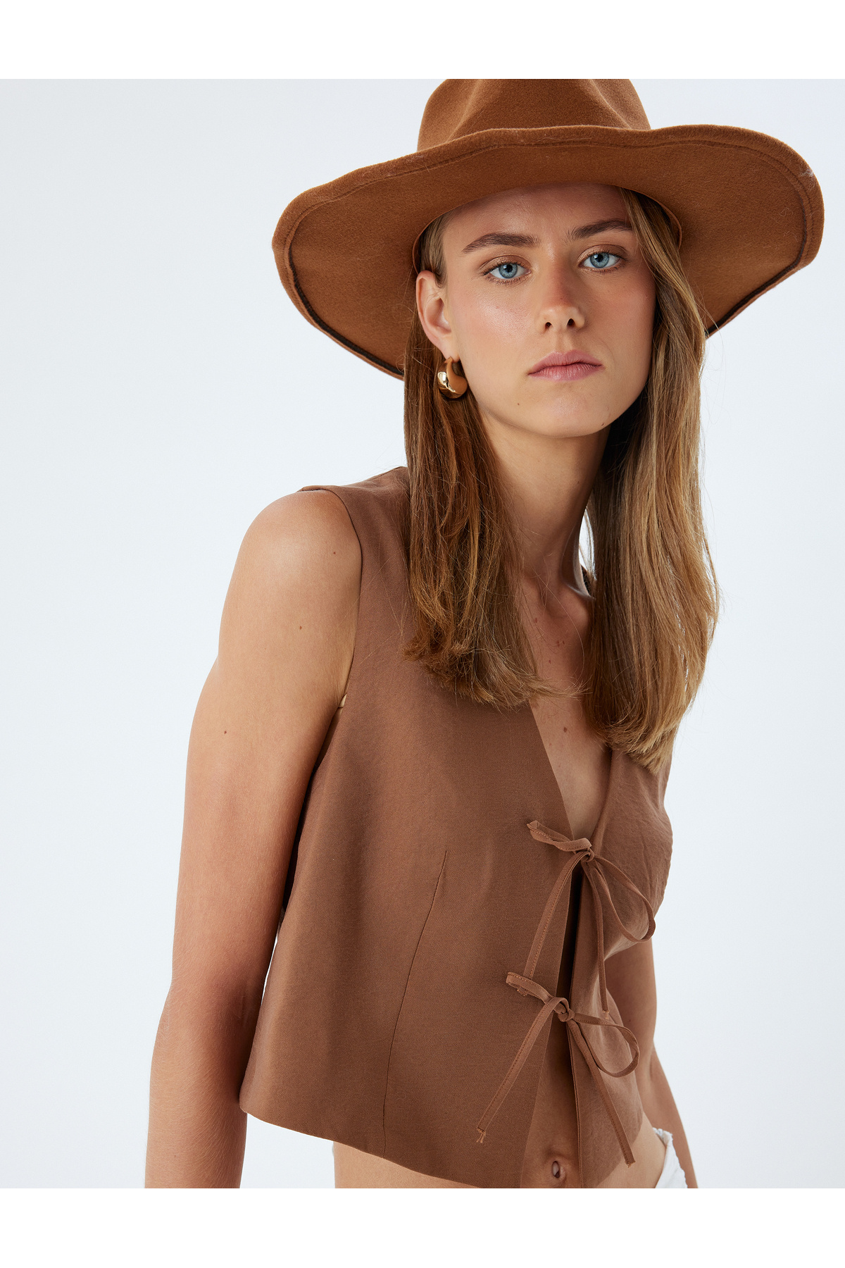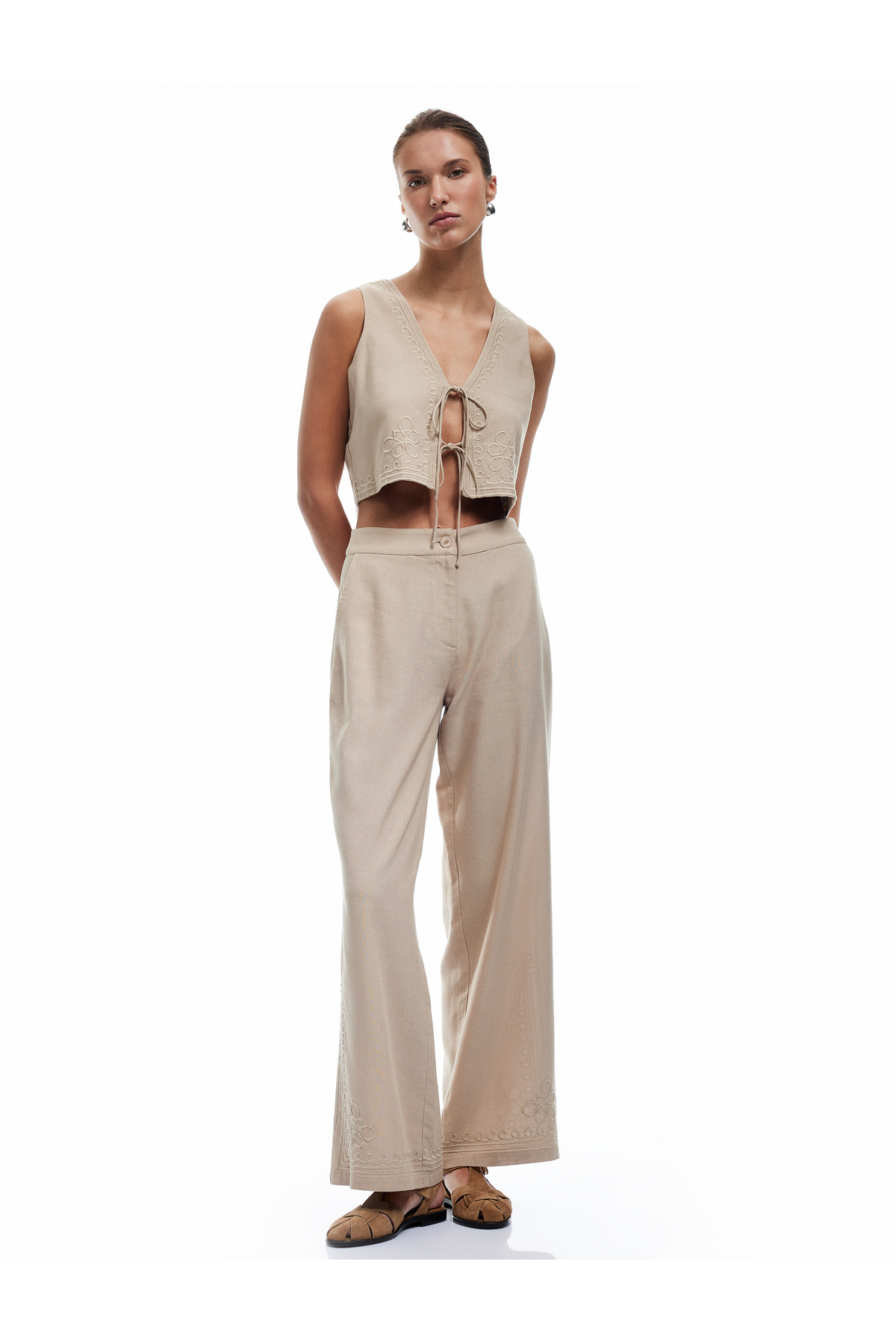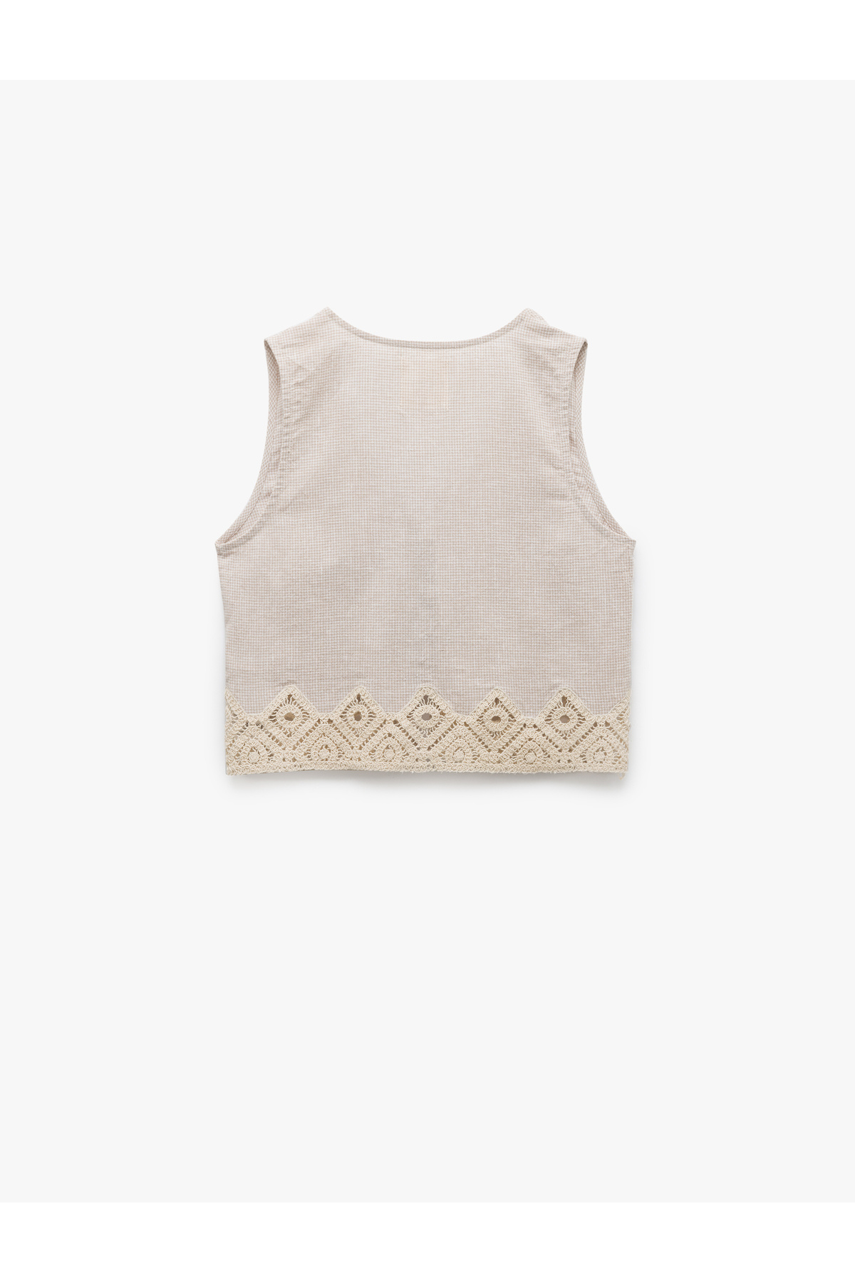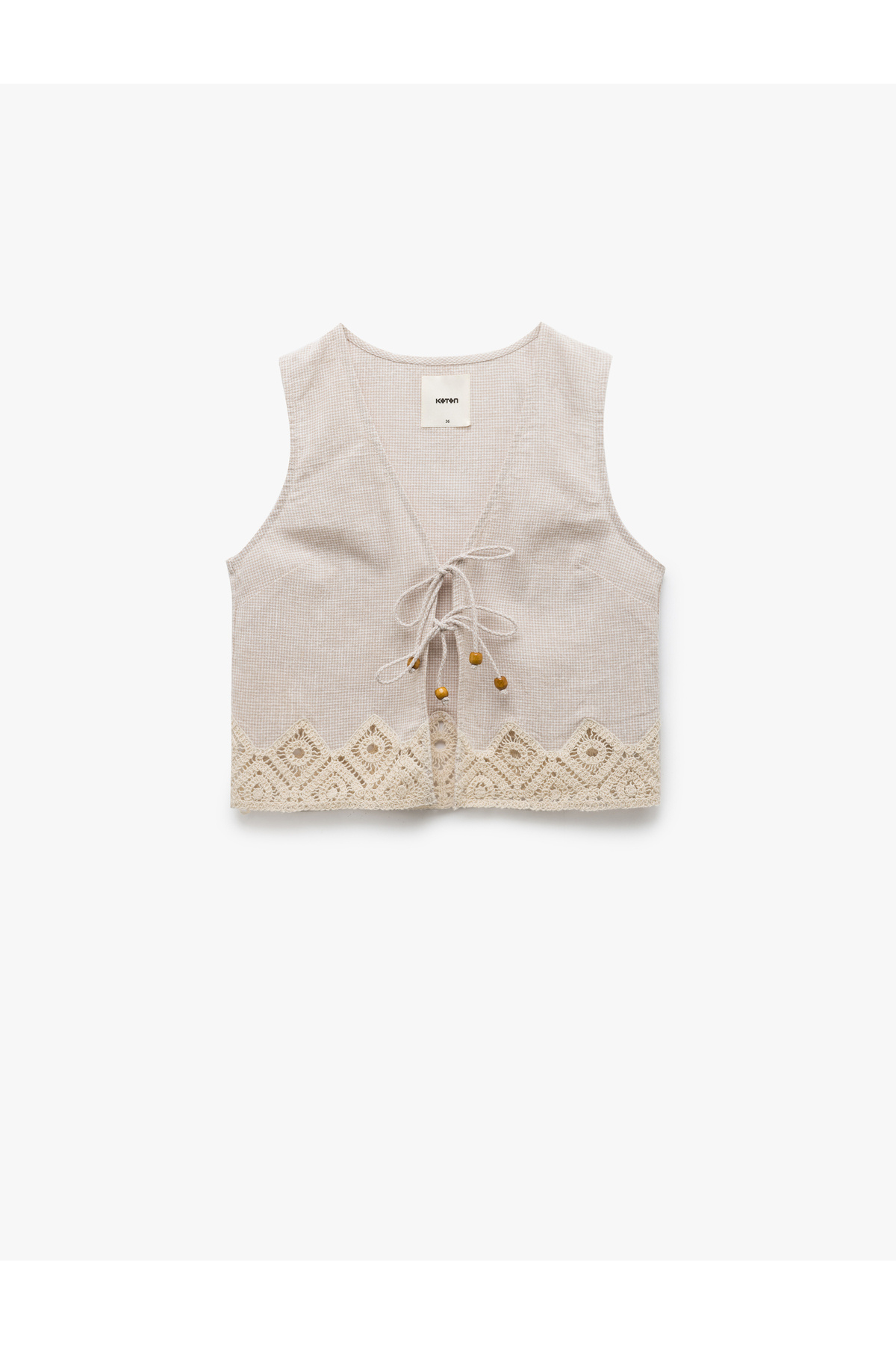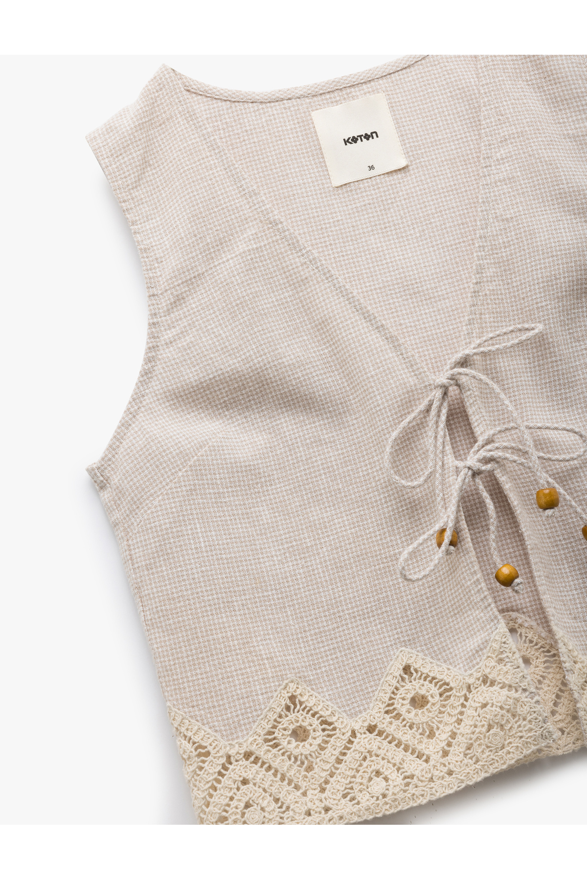 Keten Karışımlı Önden Bağlamalı Kroşe Detaylı Crop Yelek Keten Karışımlı Önden Bağlamalı Kroşe Detaylı Crop Yelek 5SAK20018PW 42