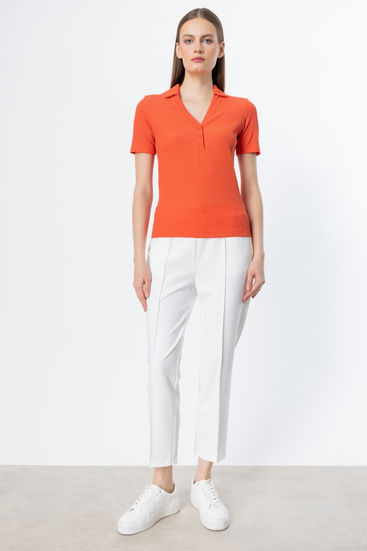 Polo Yaka Fitilli Pamuklu Bluz Polo Yaka Fitilli Pamuklu Bluz 25Y.ON.BLZ.51357.01 L