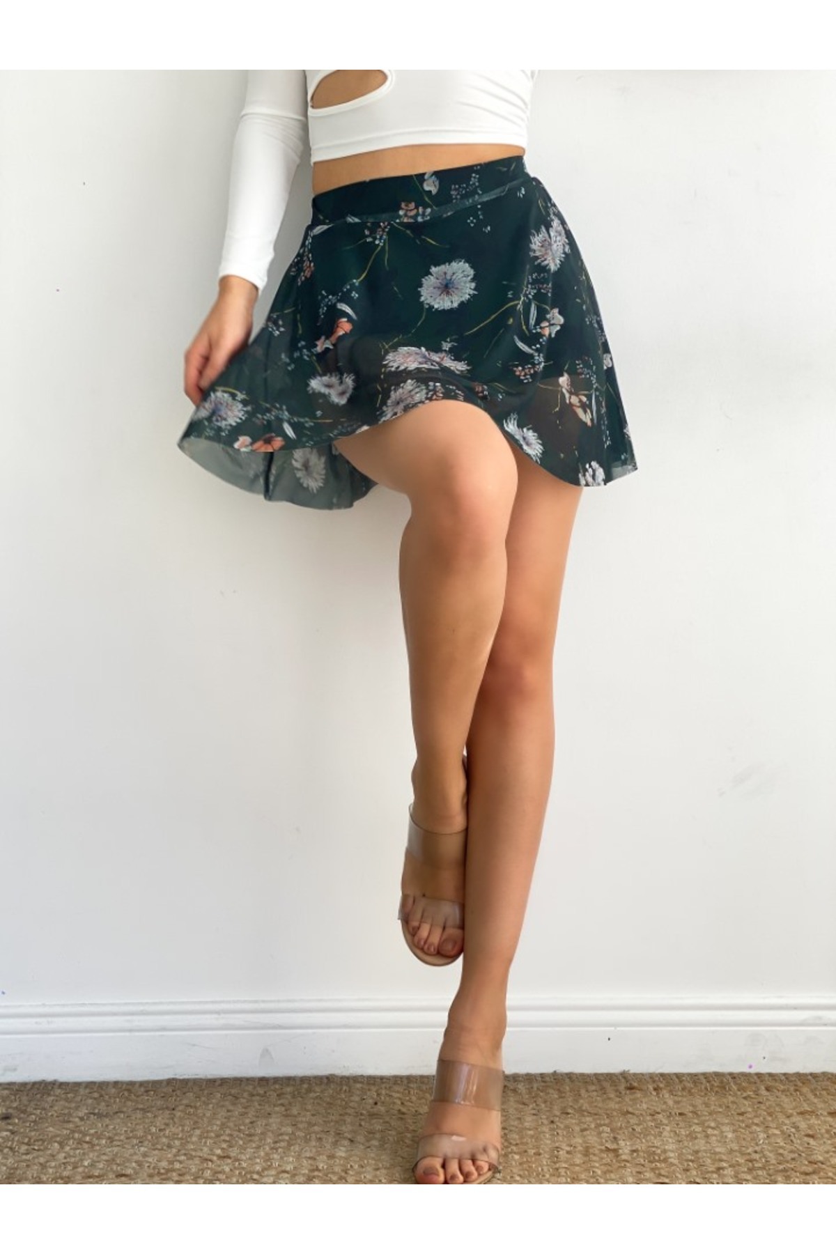 Kadın Çiçek Desenli Şifon Görünümlü Mini Etek (Astar Detaylı) Kadın Çiçek Desenli Şifon Görünümlü Mini Etek (Astar Detaylı) E.K.SA22 L