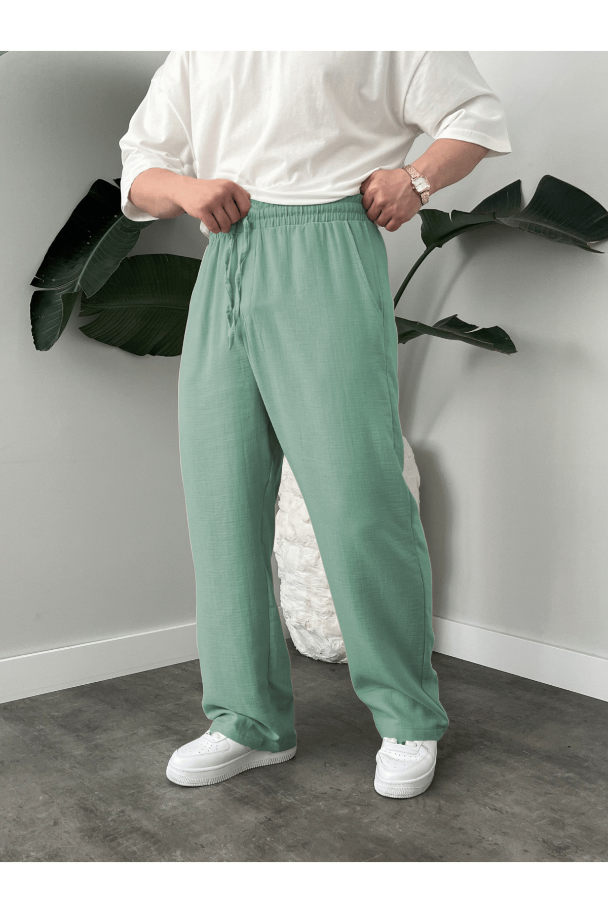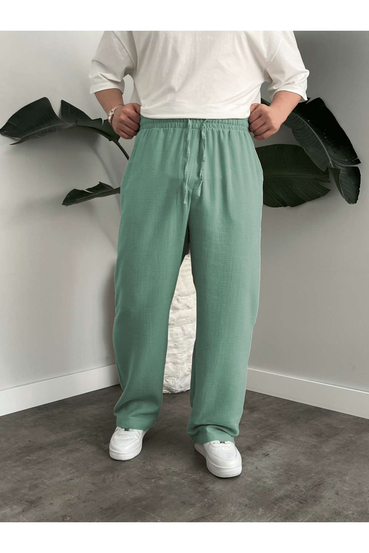 Erkek Yeşil Yazlık Müslin Keten Pamuklu Kumaş Rahat Kesim Pantalon Erkek Yeşil Yazlık Müslin Keten Pamuklu Kumaş Rahat Kesim Pantalon DEPMP 2XL
