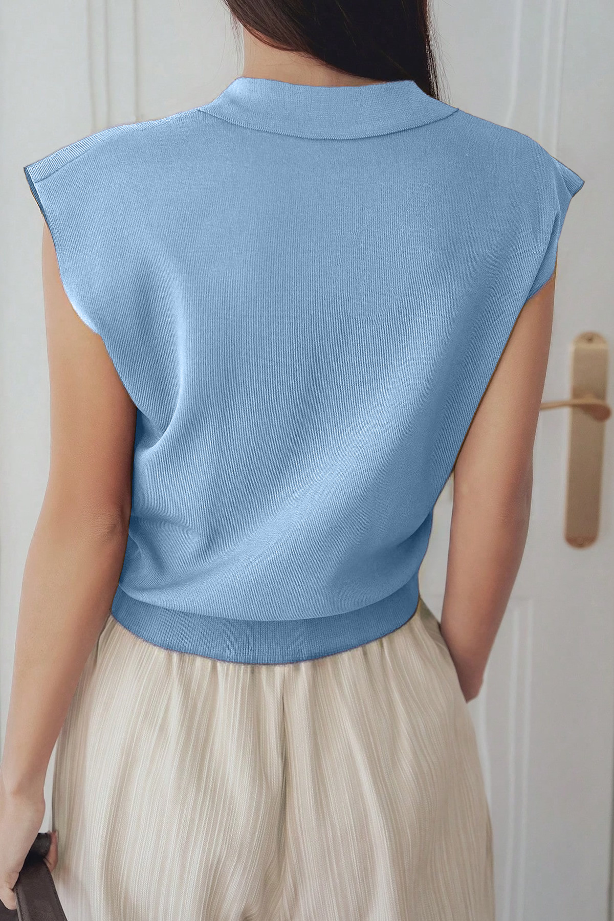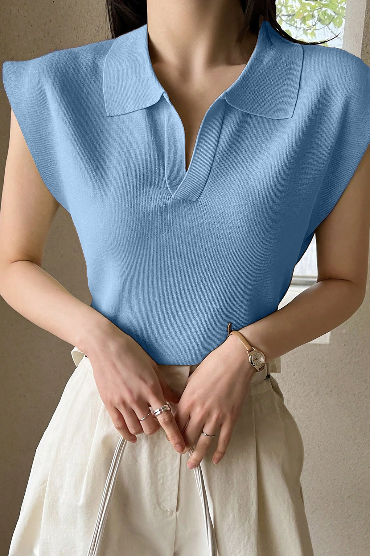 Kadın Terletmeyen Kolsuz Şık Tasarım Sıfır Kol Polo Yaka Rahat Kesim Bebe Mavi Bluz Kadın Terletmeyen Kolsuz Şık Tasarım Sıfır Kol Polo Yaka Rahat Kesim Bebe Mavi Bluz TR-22304 2XL