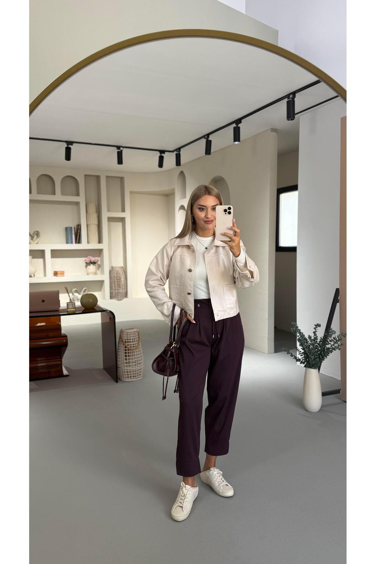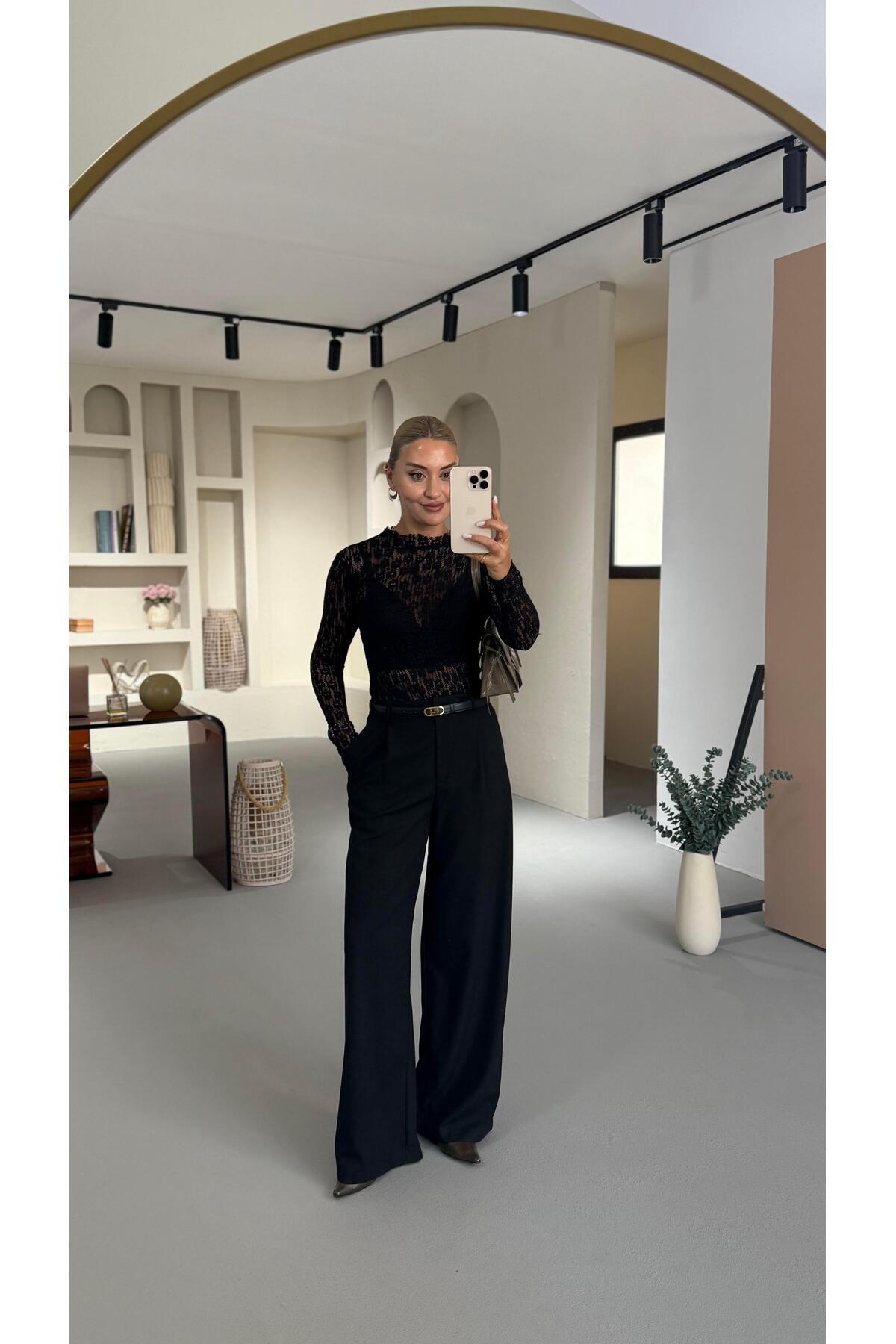 Silver Taş Detay İspanyol Paça Simli Pantolon Silver Taş Detay İspanyol Paça Simli Pantolon PNT-0495-SLVR L