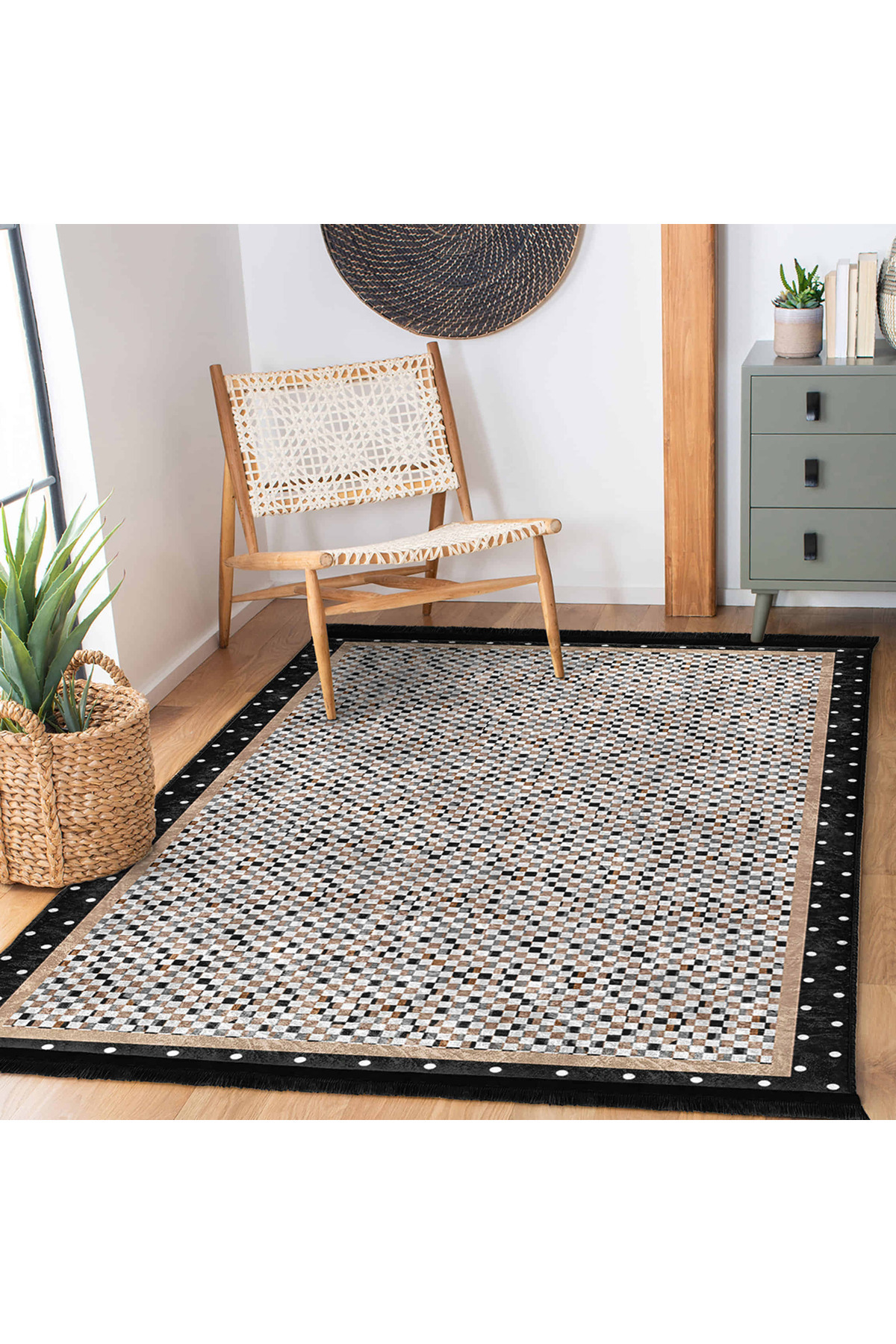 Modern Kare Desenli Dikdörtgen Salon Halısı - Yıkanabilir Kaymaz Tabanlı Mutfak Halısı Modern Kare Desenli Dikdörtgen Salon Halısı - Yıkanabilir Kaymaz Tabanlı Mutfak Halısı DikHali-12670 160 x 230