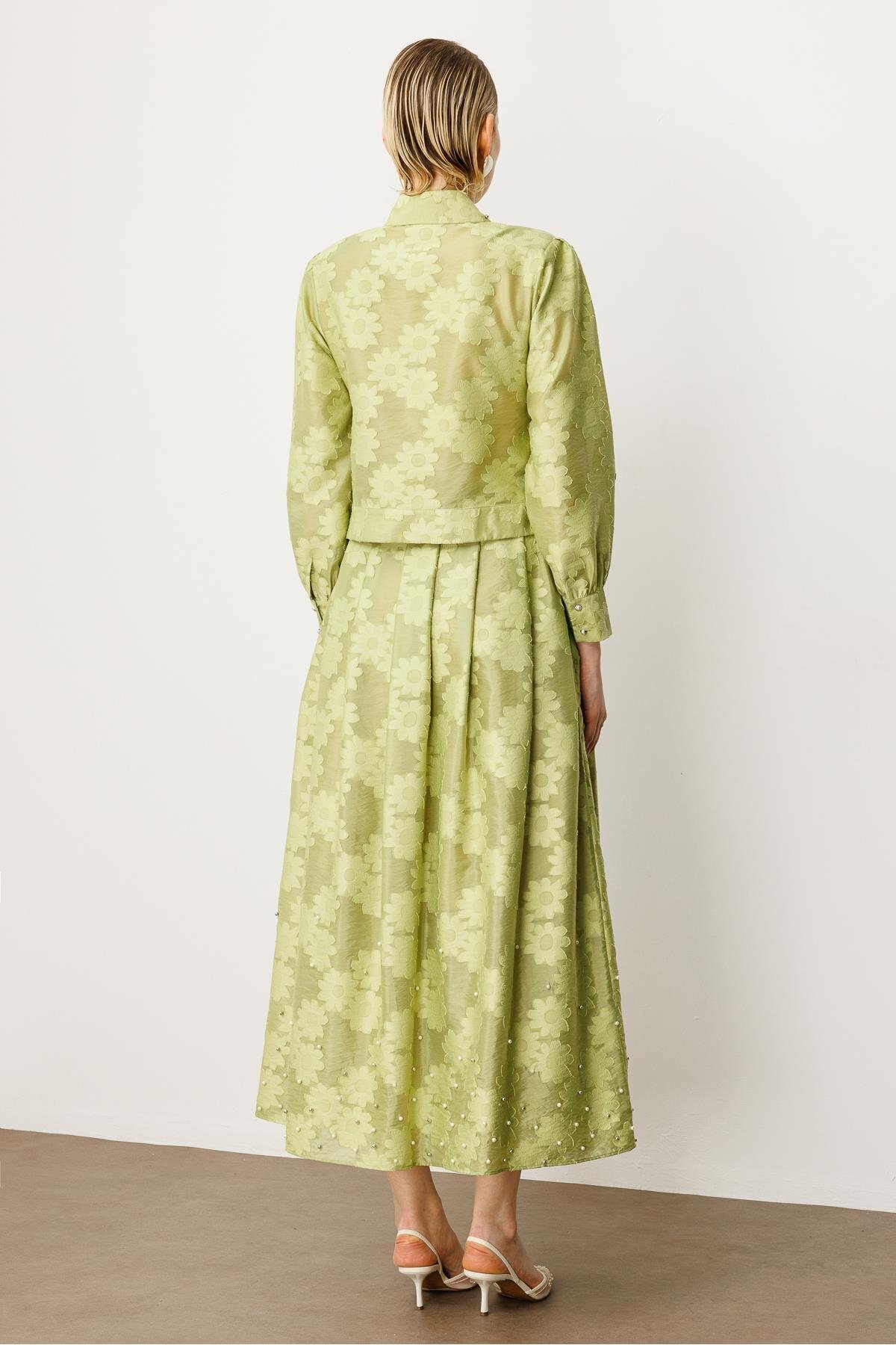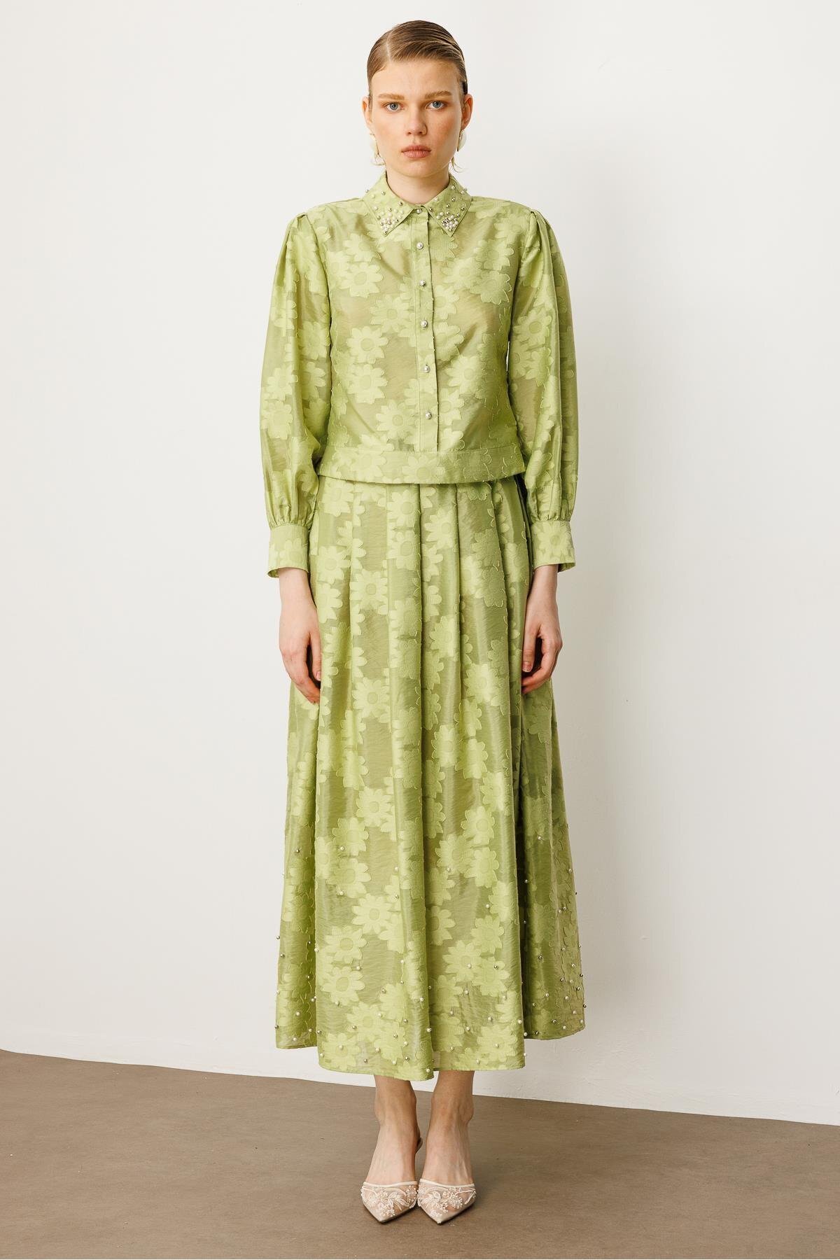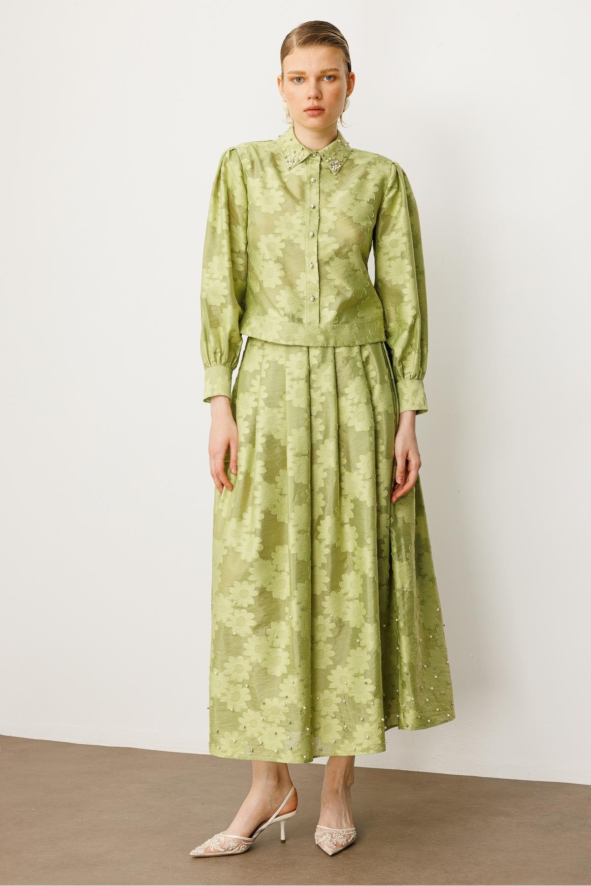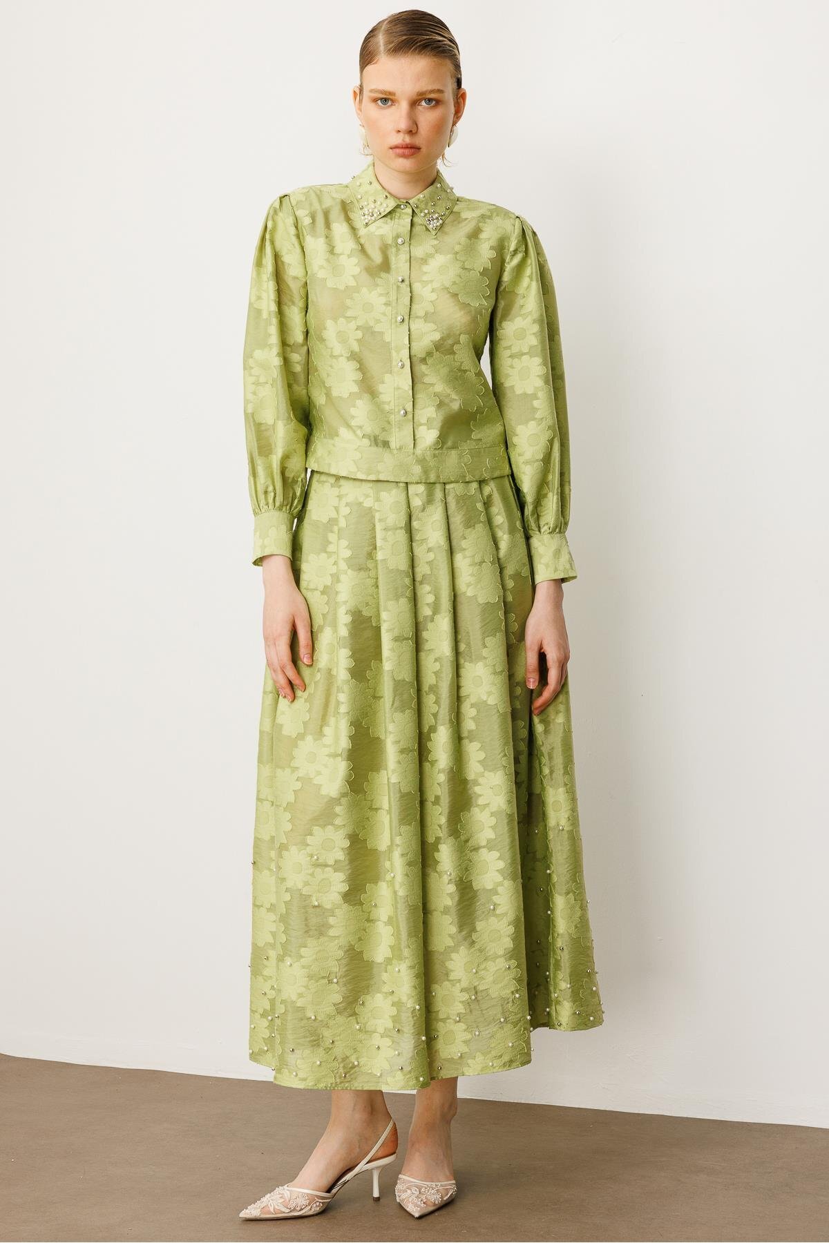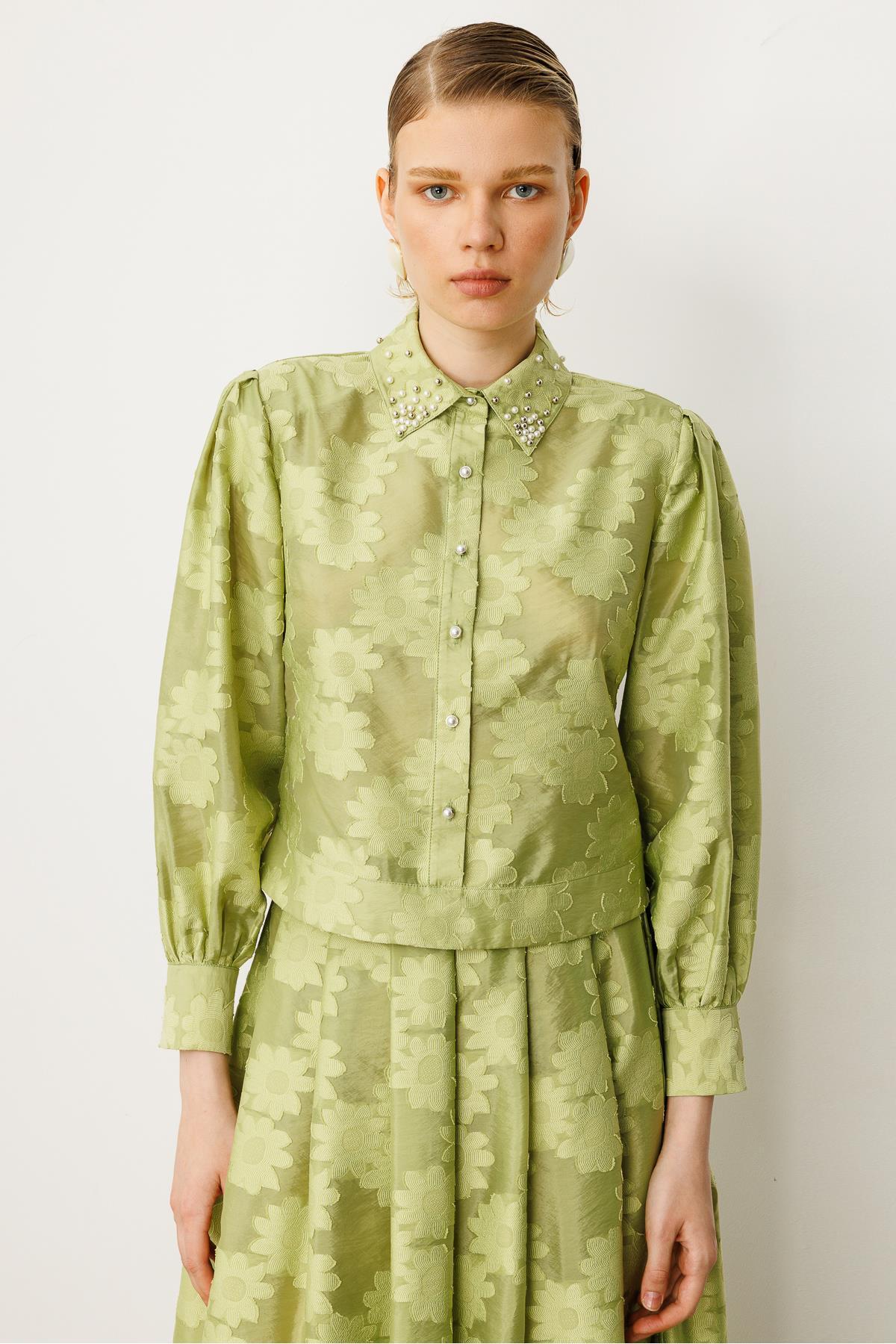 Modailgi Kolları Pileli Yakası İnci Detaylı Yandan Fermuarlı Bomber Ceket Yeşil Modailgi Kolları Pileli Yakası İnci Detaylı Yandan Fermuarlı Bomber Ceket Yeşil ILG251CKT70055 44