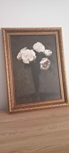 Beyaz Güller - Kahverengi Eskitme Çerçeve Beyaz Güller - Kahverengi Eskitme Çerçeve 108tablo 50 x 70