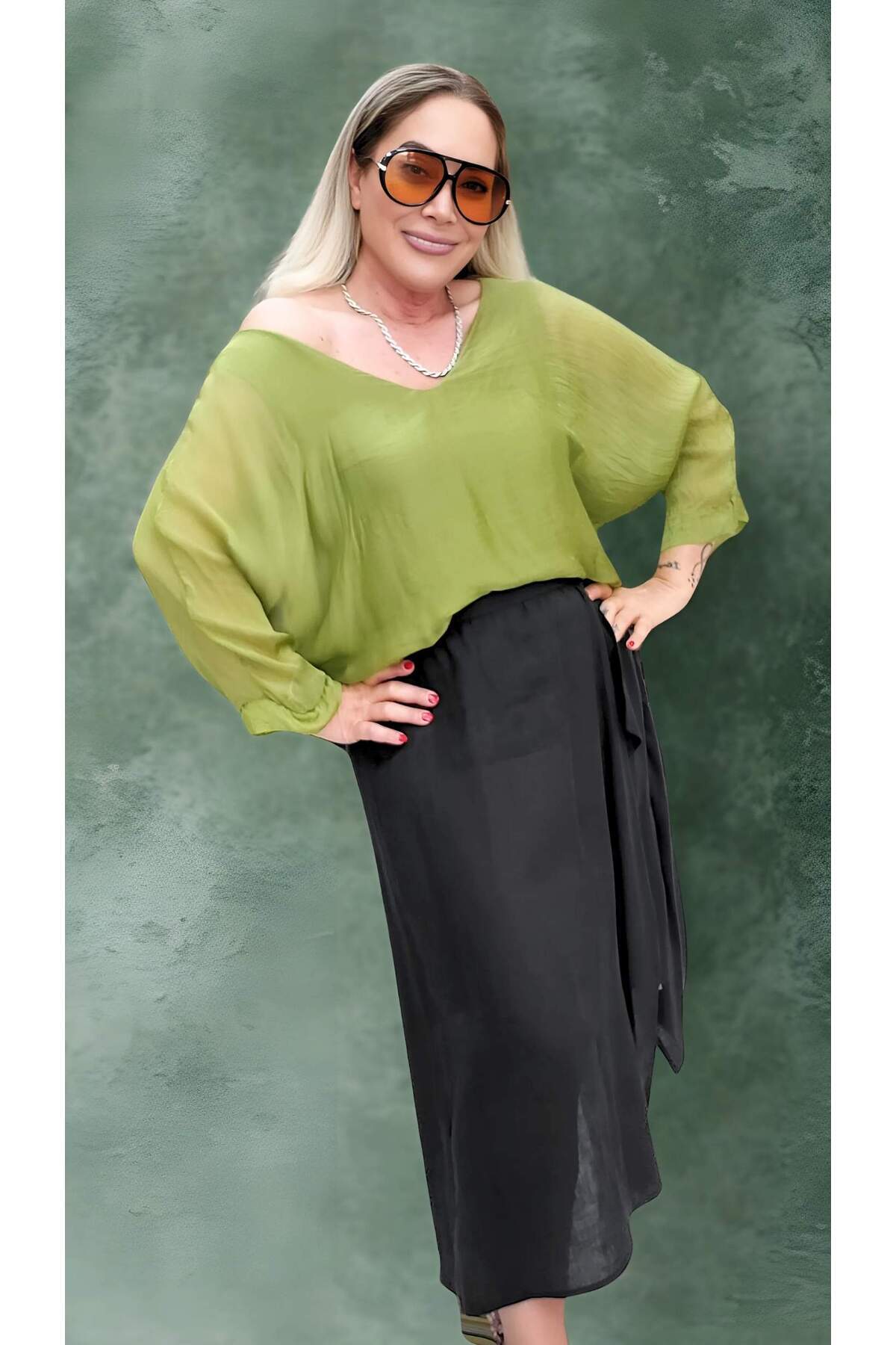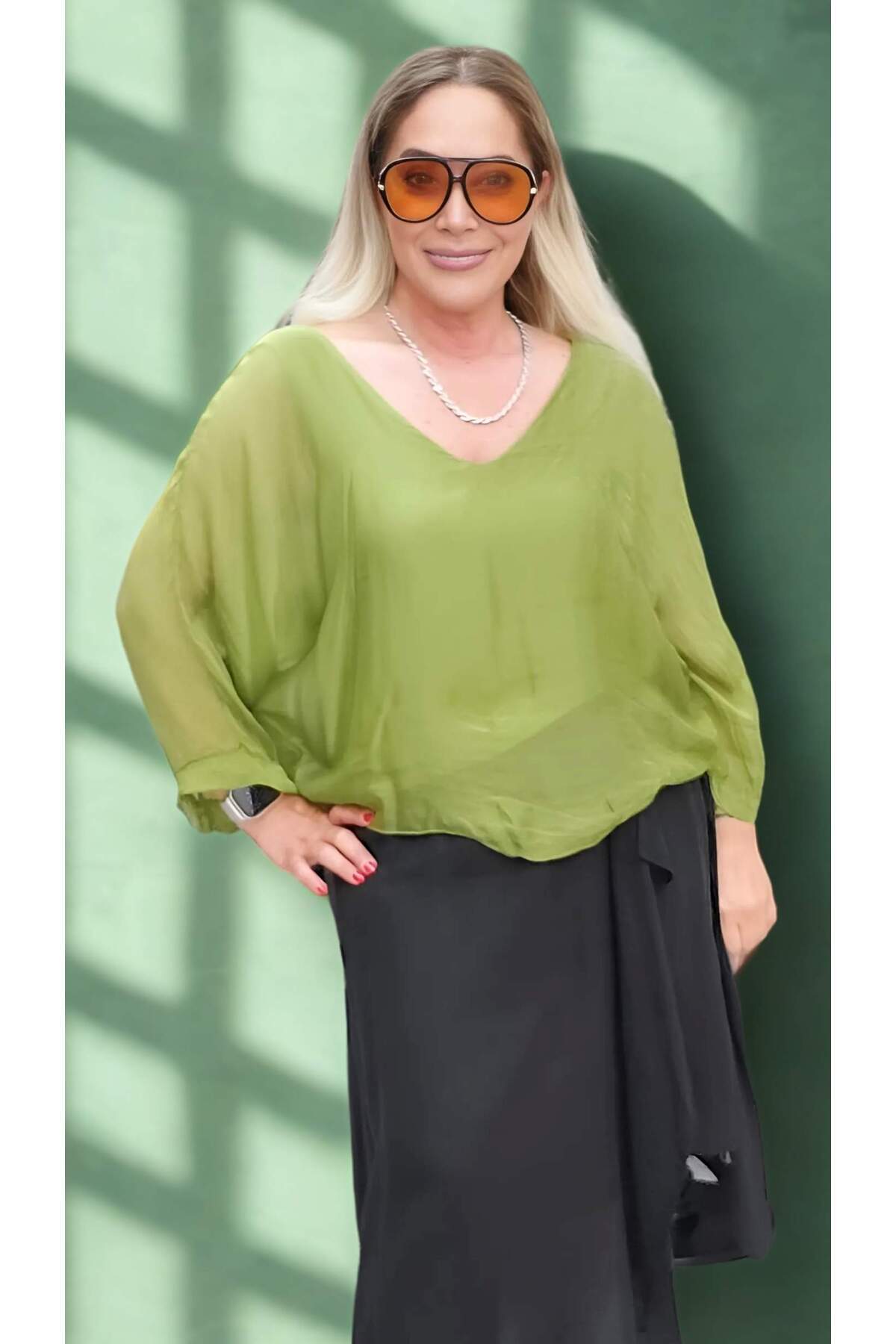 V Yaka Astarlı Uzun Kollu İthal İpek Bluz V Yaka Astarlı Uzun Kollu İthal İpek Bluz STBLZ034-2 Standart