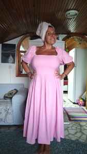 Yaka kenarı ve Kol Ağzı Lastikli Balon Kol Eteği Pileli Midi Elbise Yaka kenarı ve Kol Ağzı Lastikli Balon Kol Eteği Pileli Midi Elbise CYLSS25-115 46