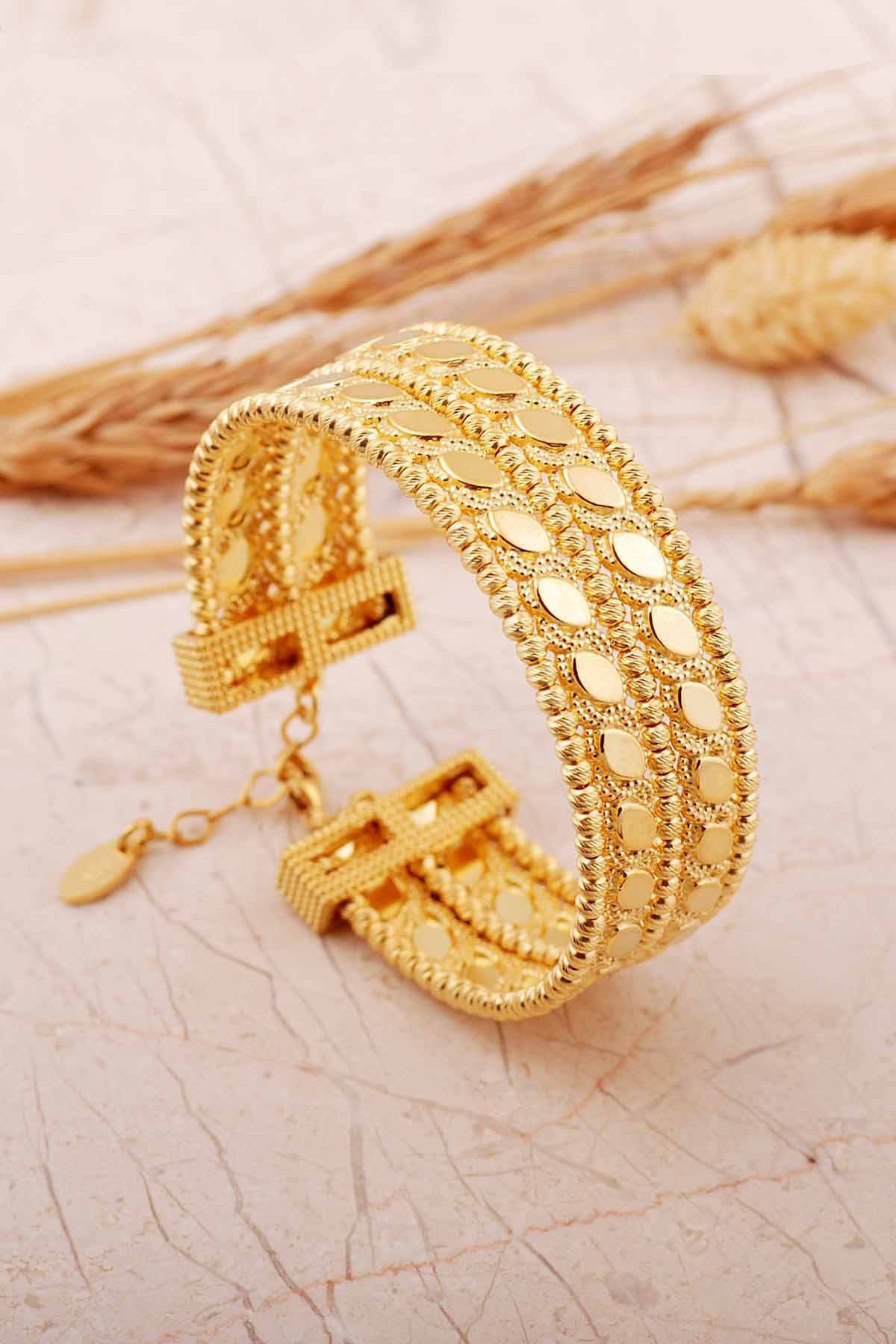 Telkari Altın Yaldızlı Kişniş Akıtma Gümüş Bileklik 3632 Telkari Altın Yaldızlı Kişniş Akıtma Gümüş Bileklik 3632 MBL3632 تک سایز