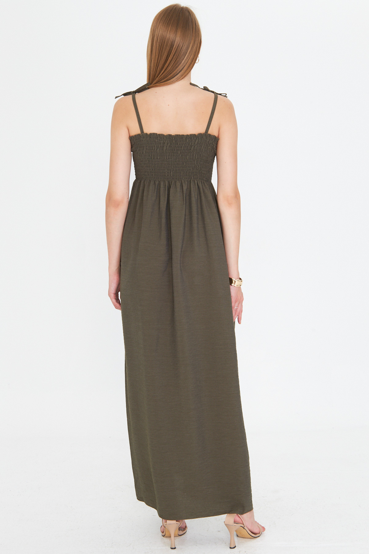 Kadın Koyu Haki Askıları Bağcıklı Göğsü Gipe Lastikli Uzun Elbise ARM-25Y001069 Kadın Koyu Haki Askıları Bağcıklı Göğsü Gipe Lastikli Uzun Elbise ARM-25Y001069 L/XL