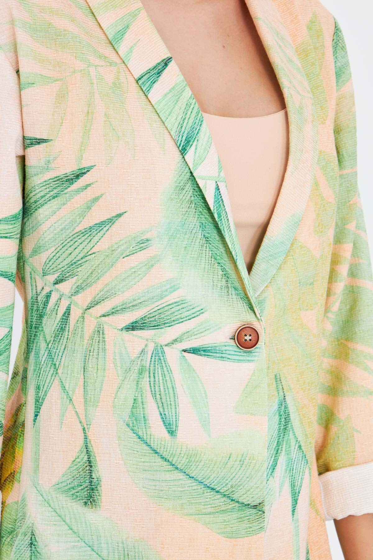 Kadın Yeşil Şal Yaka Desenli Tek Düğme Ceket ARM-25Y001071 Kadın Yeşil Şal Yaka Desenli Tek Düğme Ceket ARM-25Y001071 XL