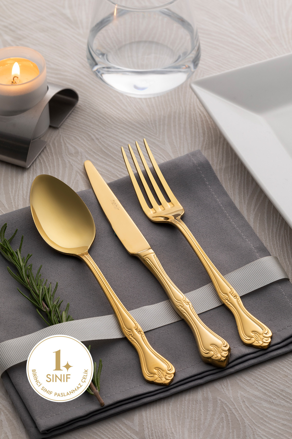 Marbella Full Altın 12 Kişilik 72 Parça Kutulu Çatal Kaşık Bıçak Takımı Marbella Full Altın 12 Kişilik 72 Parça Kutulu Çatal Kaşık Bıçak Takımı 8697076406496 تک سایز