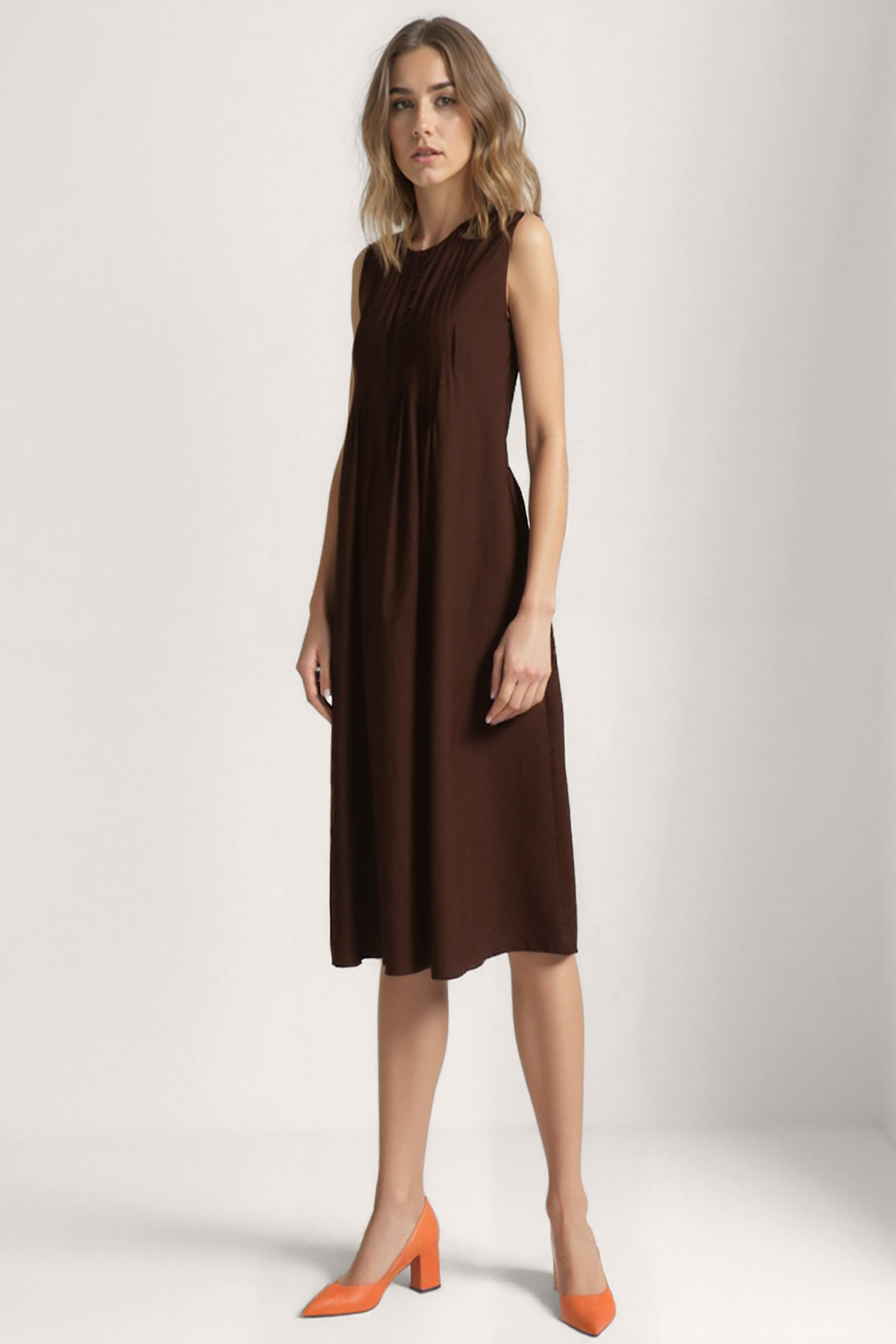 Önü Düğmeli Krinkıl Kumaş Sıfır Kol Elbise Önü Düğmeli Krinkıl Kumaş Sıfır Kol Elbise 25-491 L