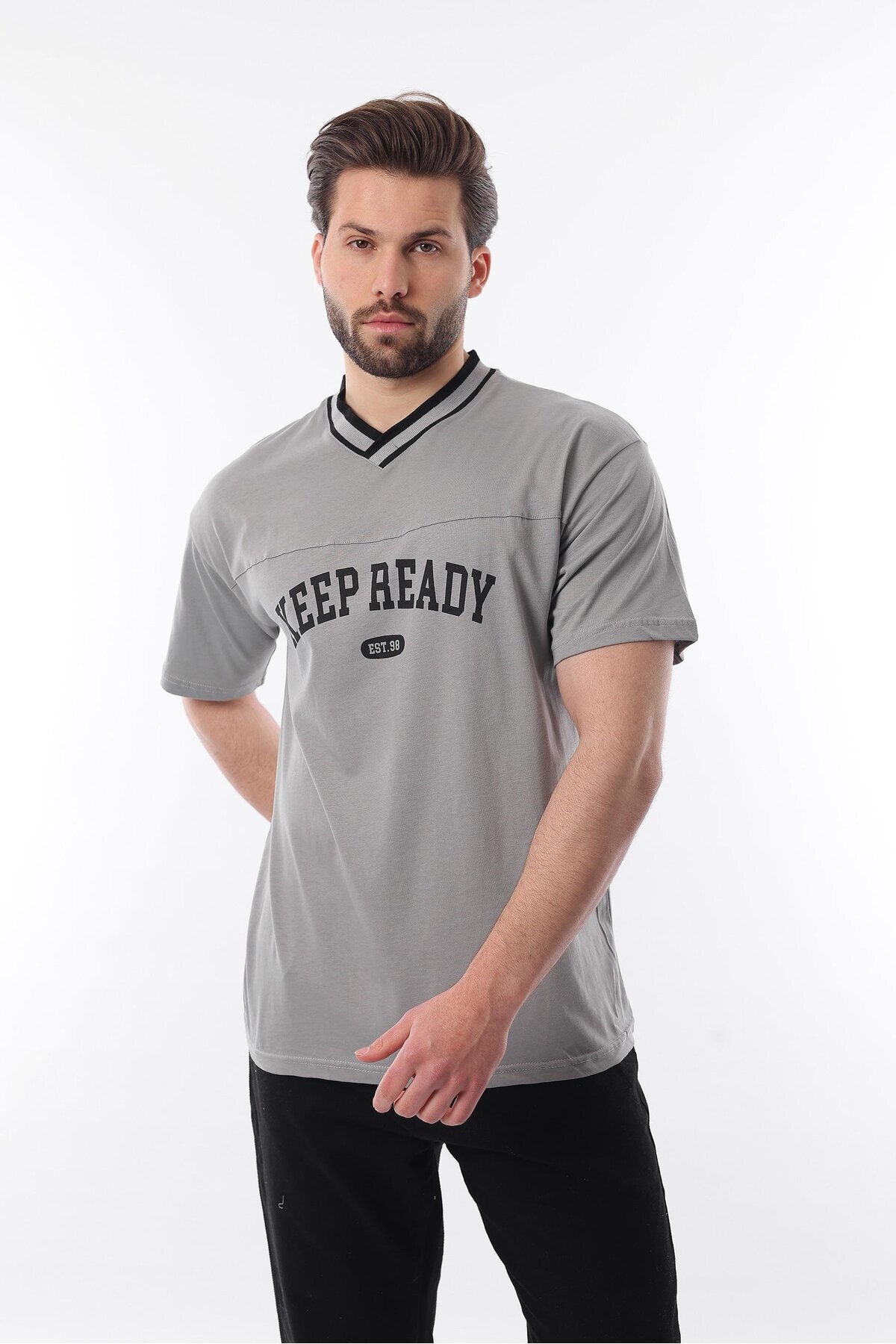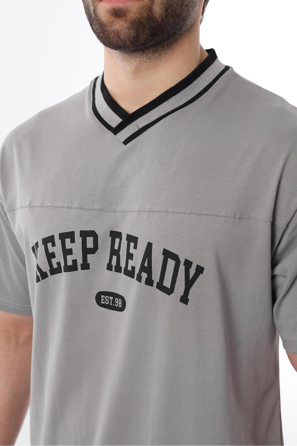 Boyalı Gri V Yaka Baskılı Kısa Kollu Overfit Tişört 7039 Boyalı Gri V Yaka Baskılı Kısa Kollu Overfit Tişört 7039 2XL