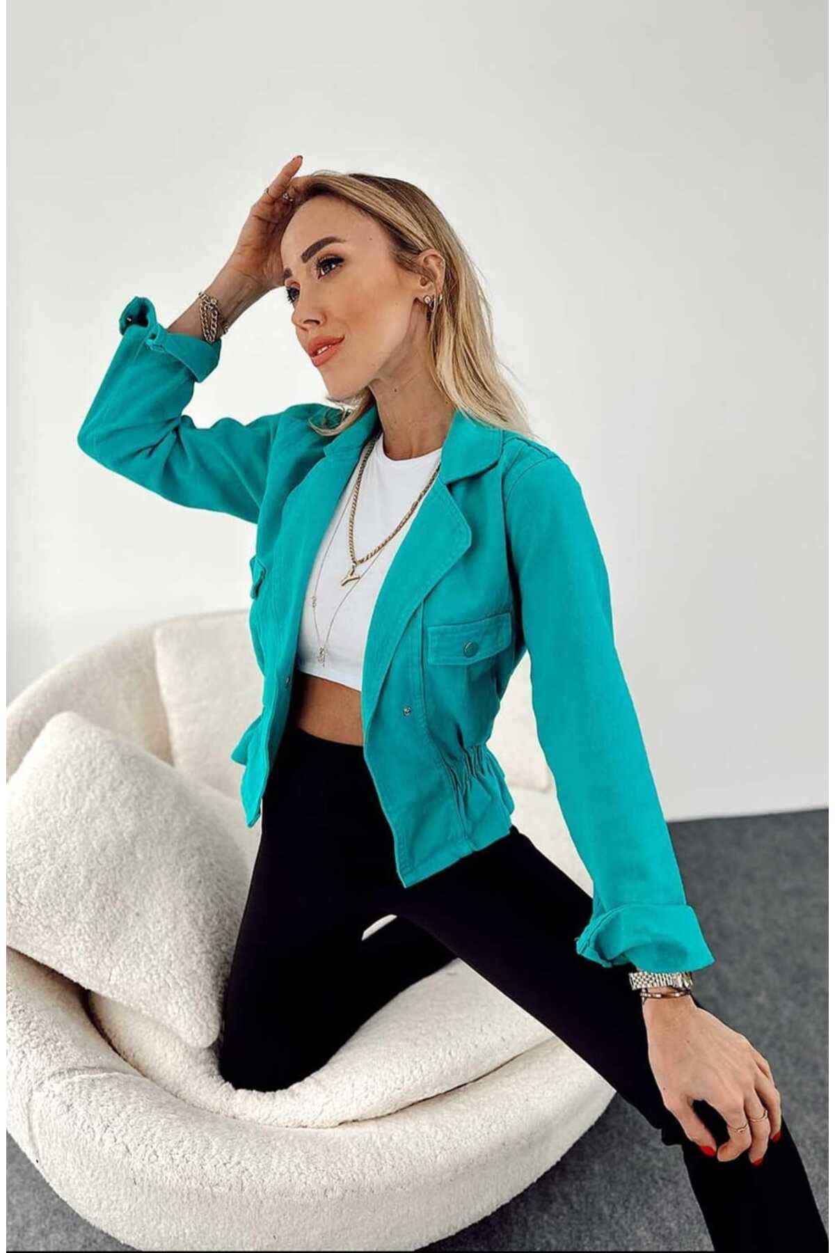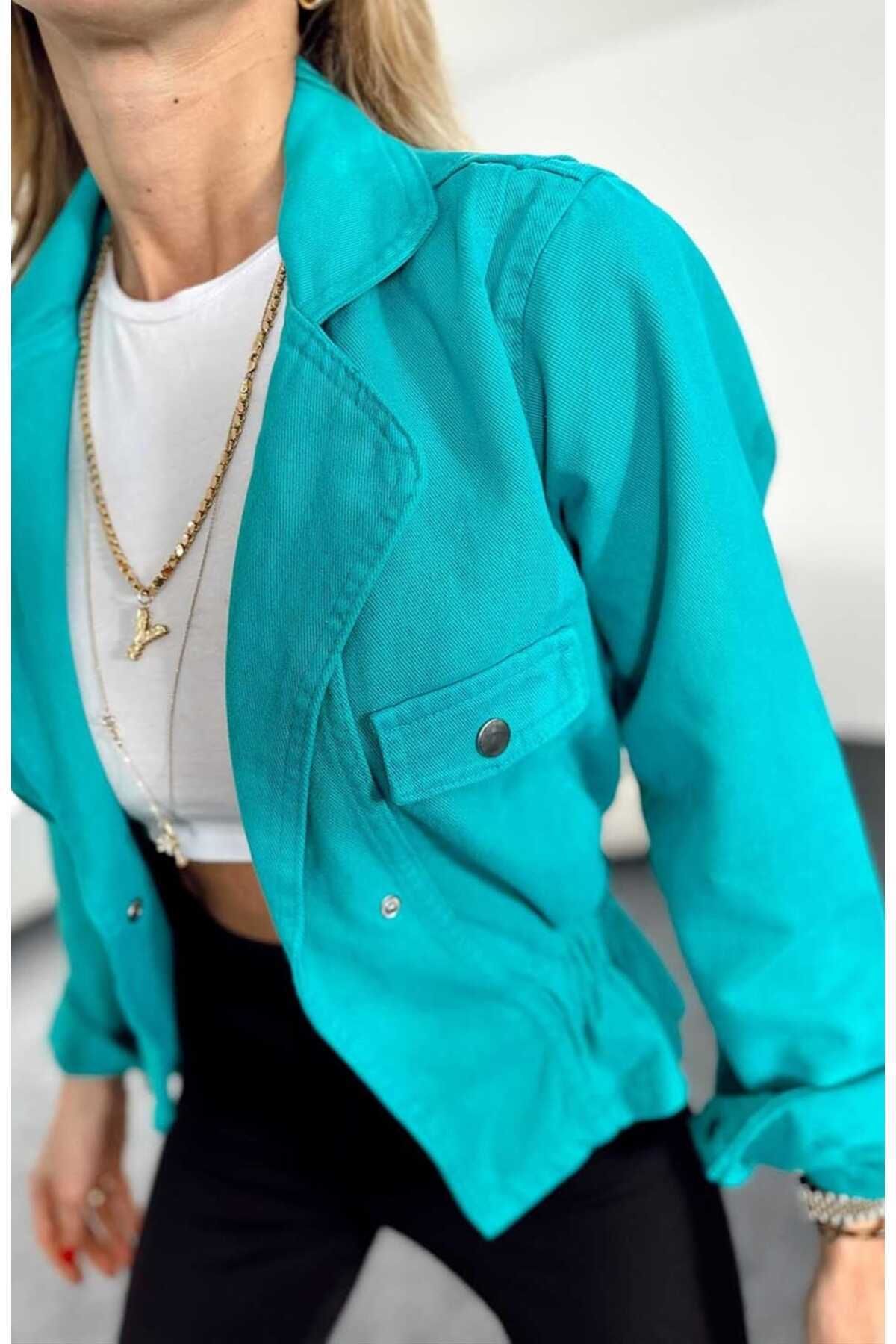 Kadın Beli Lastikli Mono Yaka Biker Jean Ceket Kadın Beli Lastikli Mono Yaka Biker Jean Ceket 738 L