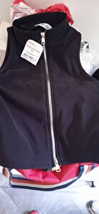 Siyah Fermuar Detaylı Kolsuz Crop Bluz 2226 Siyah Fermuar Detaylı Kolsuz Crop Bluz 2226 25Y1123UST193 L