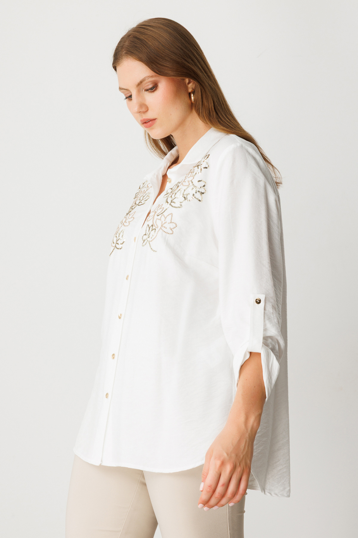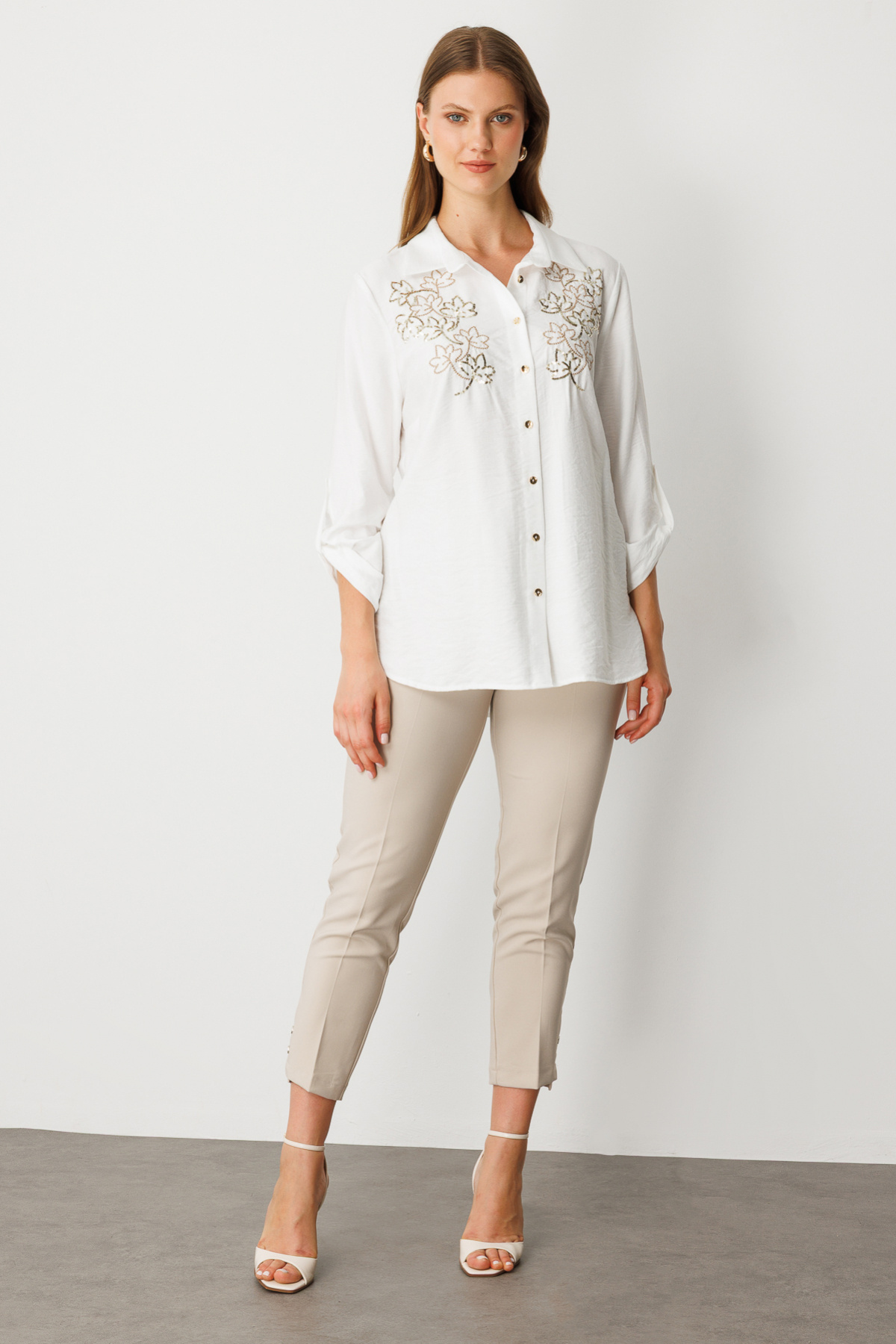 Mi Önü Nakışlı Pamuk Gömlek Mi Önü Nakışlı Pamuk Gömlek 25Y.MI.BLZ.82741.01 50
