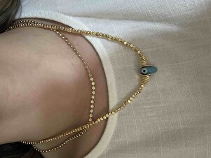 Gold nazar detaylı boncuk küp kolye Gold nazar detaylı boncuk küp kolye mbrlbrk15 S