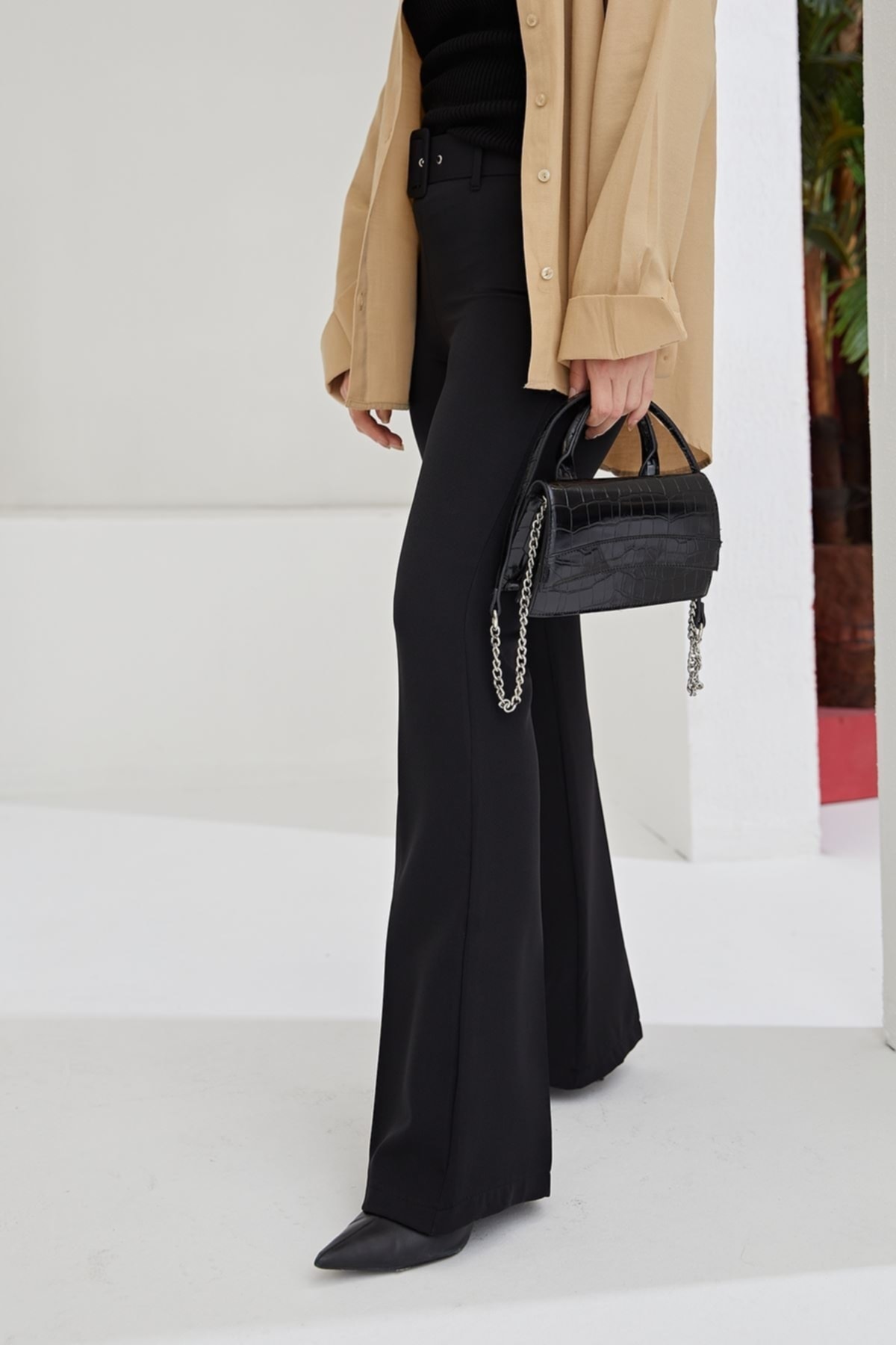 Kadın Dabıl krep kumaş İspanyol pantalon Kadın Dabıl krep kumaş İspanyol pantalon vizon İspanyol 48