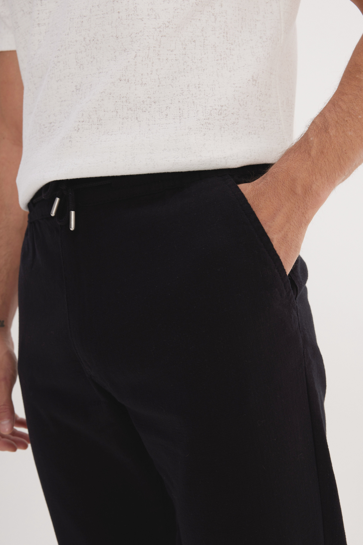 Erkek Siyah %100 Pamuk Slim Fit Dar Kesim Beli Bağlamalı Yan Cepli Pantolon Erkek Siyah %100 Pamuk Slim Fit Dar Kesim Beli Bağlamalı Yan Cepli Pantolon ETE001252683 38