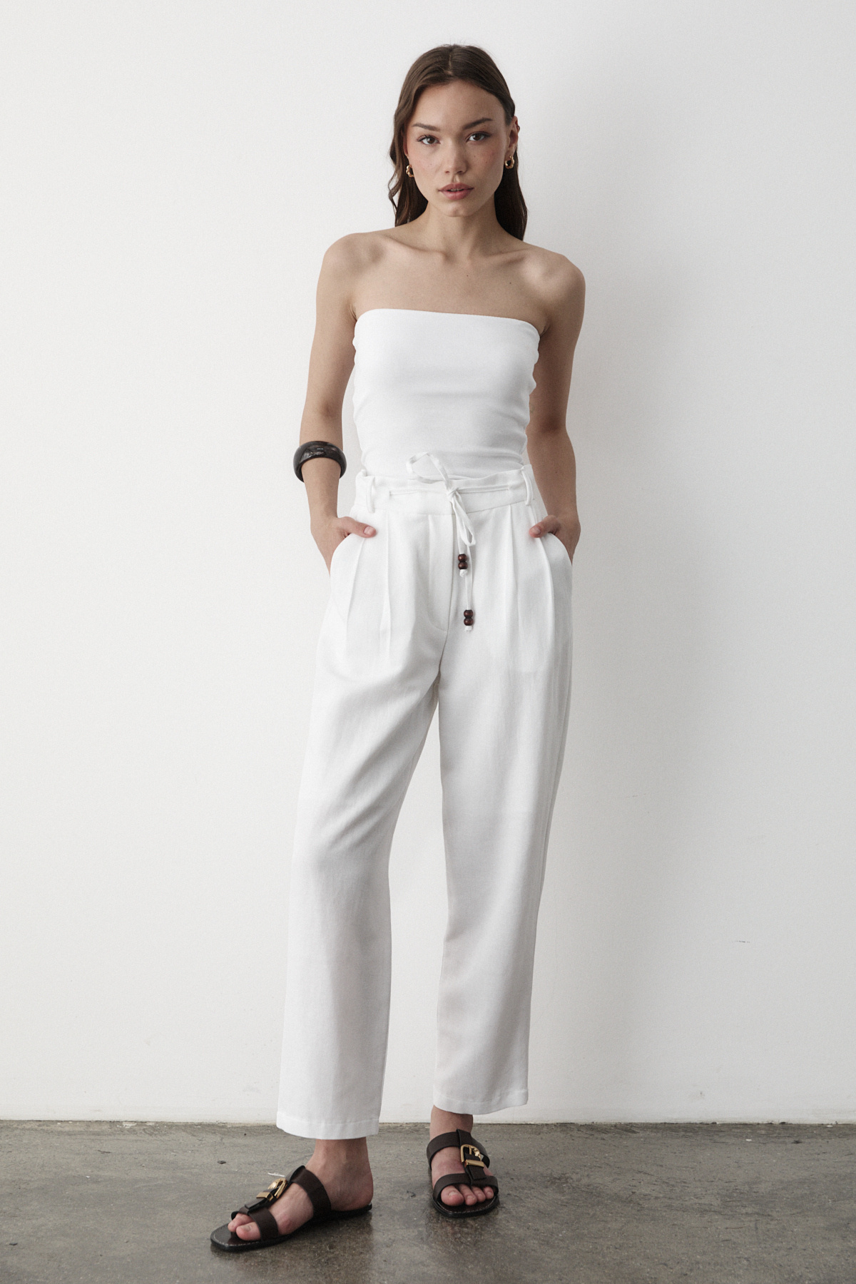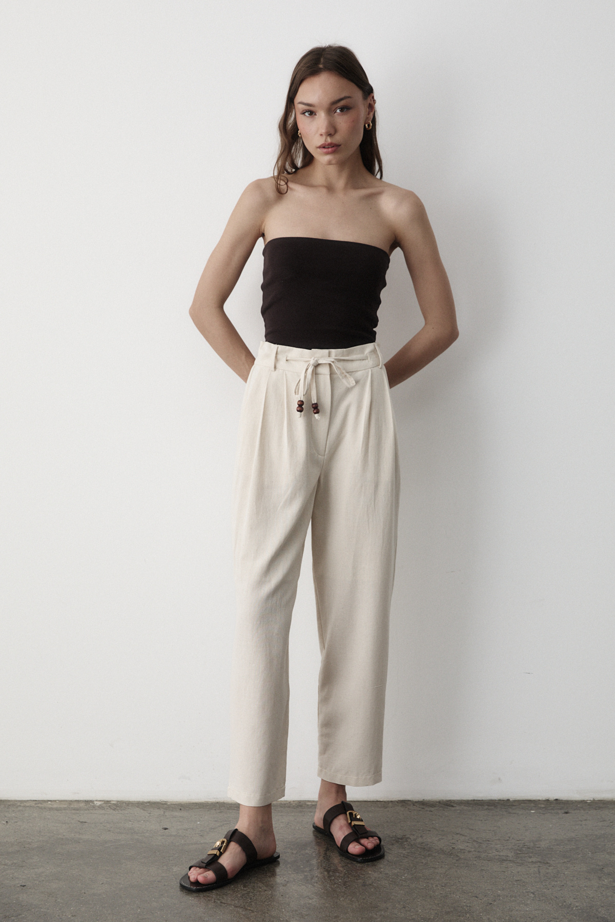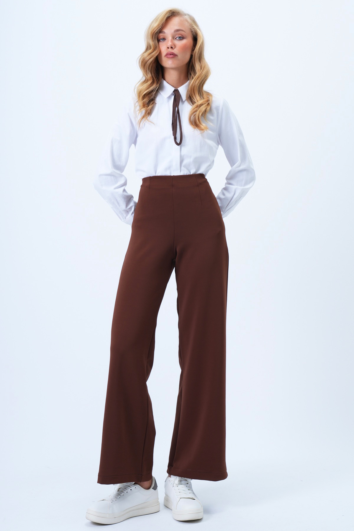 Kadın Kahverengi Yüksel Bel Boncuklu Bağcıklı Keten Pantolon Kadın Kahverengi Yüksel Bel Boncuklu Bağcıklı Keten Pantolon 3812 XL
