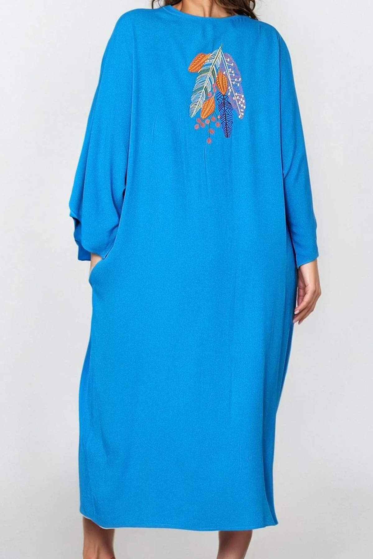 Kadın MAVİ Düğmeli Çift Cepli Nakışlı Büyük Beden Elbise VS00313 Kadın MAVİ Düğmeli Çift Cepli Nakışlı Büyük Beden Elbise VS00313 46