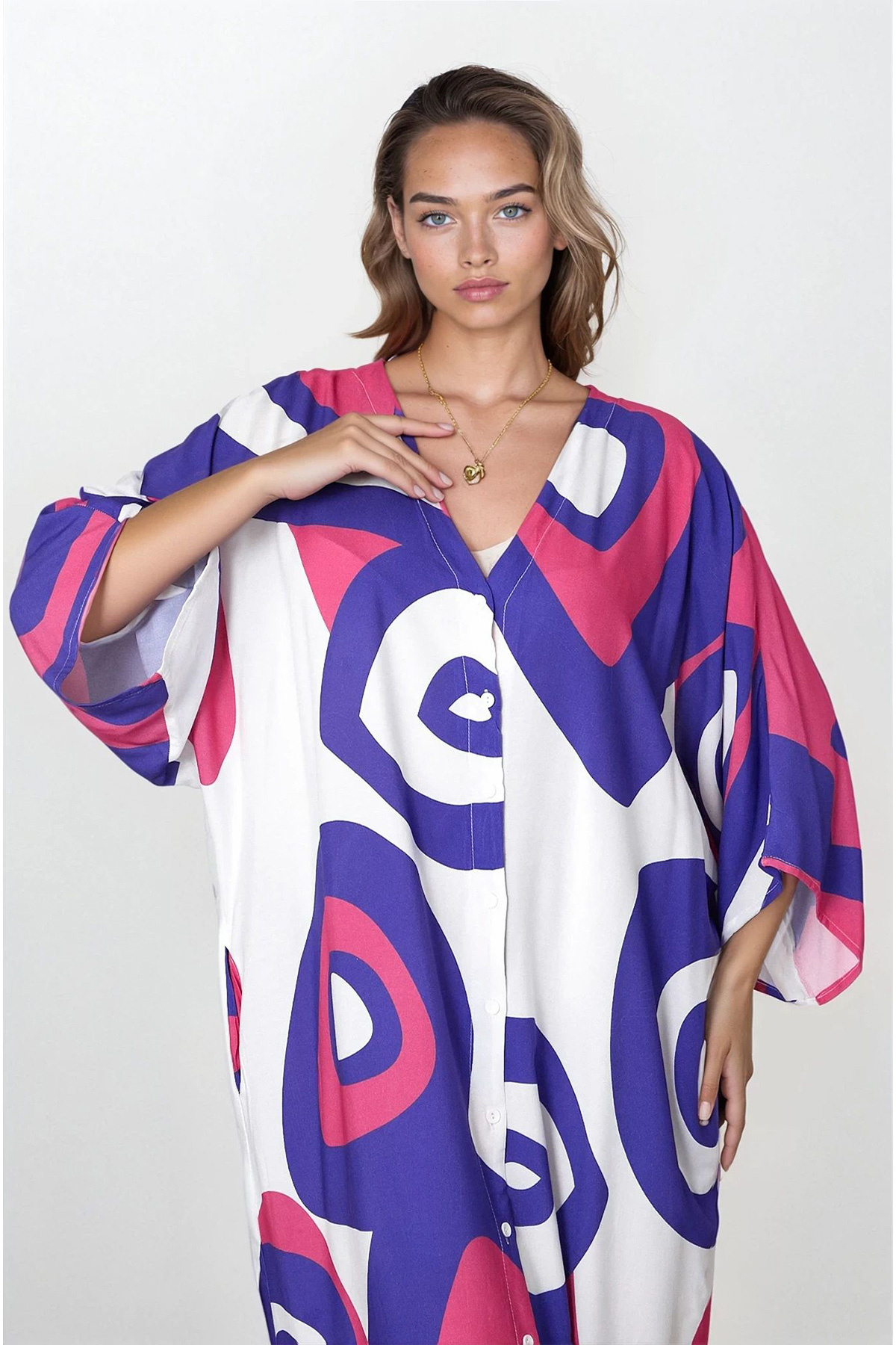 Kadın LİLA Önü Düğmeli Çift Cepli Büyük Beden Viskon Elbise VS00316 Kadın LİLA Önü Düğmeli Çift Cepli Büyük Beden Viskon Elbise VS00316 46
