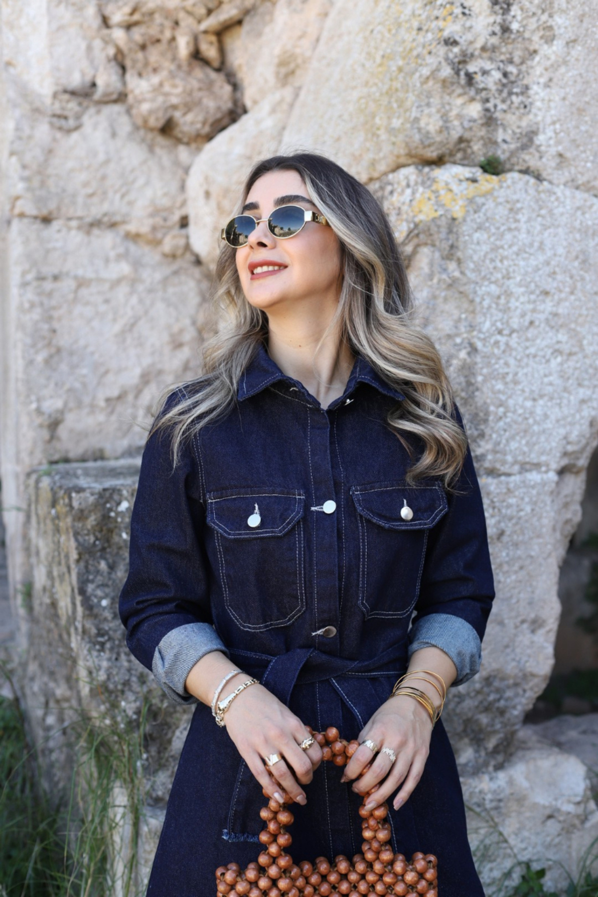 SAGİ JEANS Kadın Uzun Kollu Kuşaklı Etek Ucu Yırtıklı KOT ELBİSE SAGİ JEANS Kadın Uzun Kollu Kuşaklı Etek Ucu Yırtıklı KOT ELBİSE 10489 L