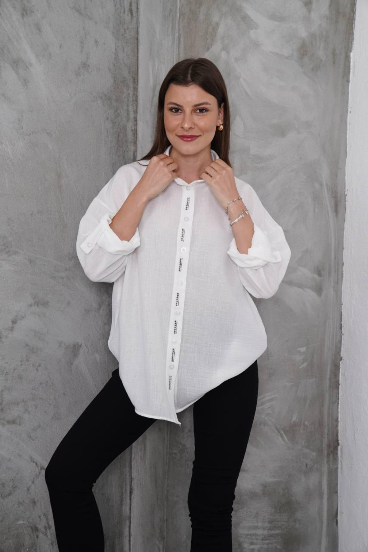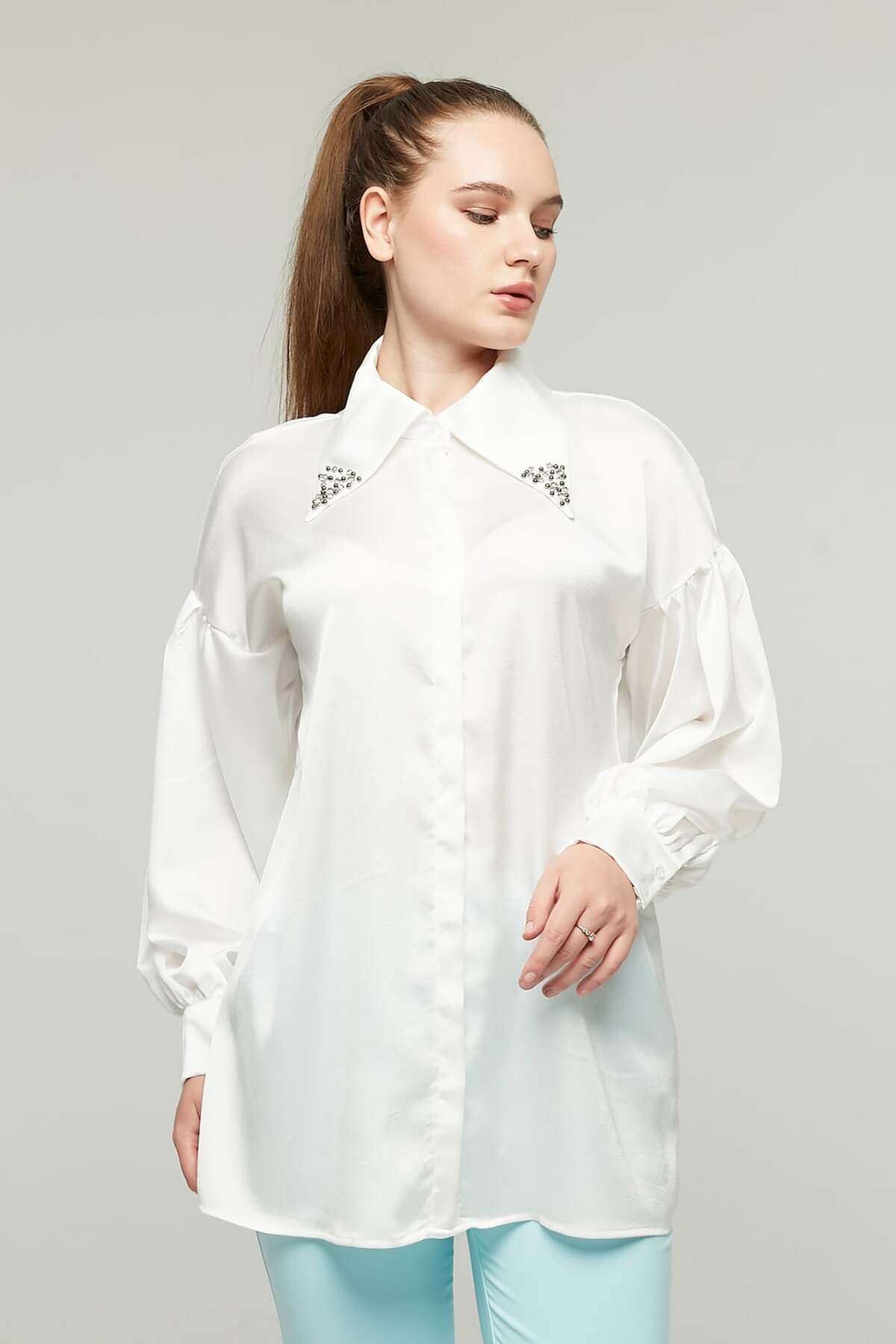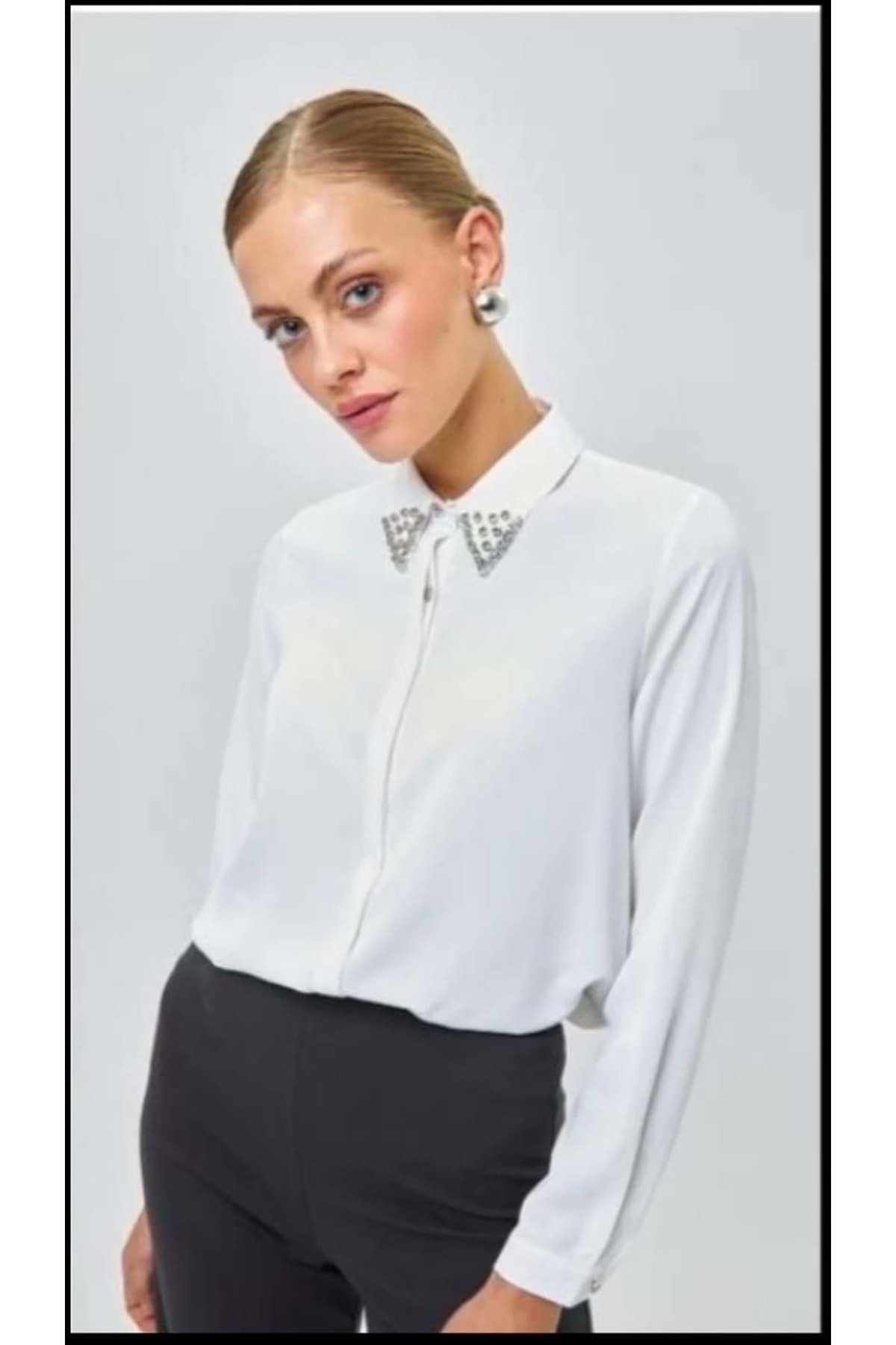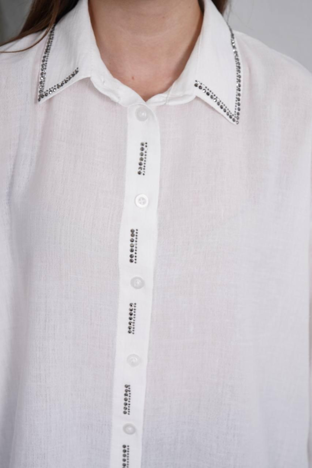 Kadın Şık Yakası Taşlı Uzun Kollu Aerobin Beyaz Gömlek Kadın Şık Yakası Taşlı Uzun Kollu Aerobin Beyaz Gömlek 485ngdç1041 L