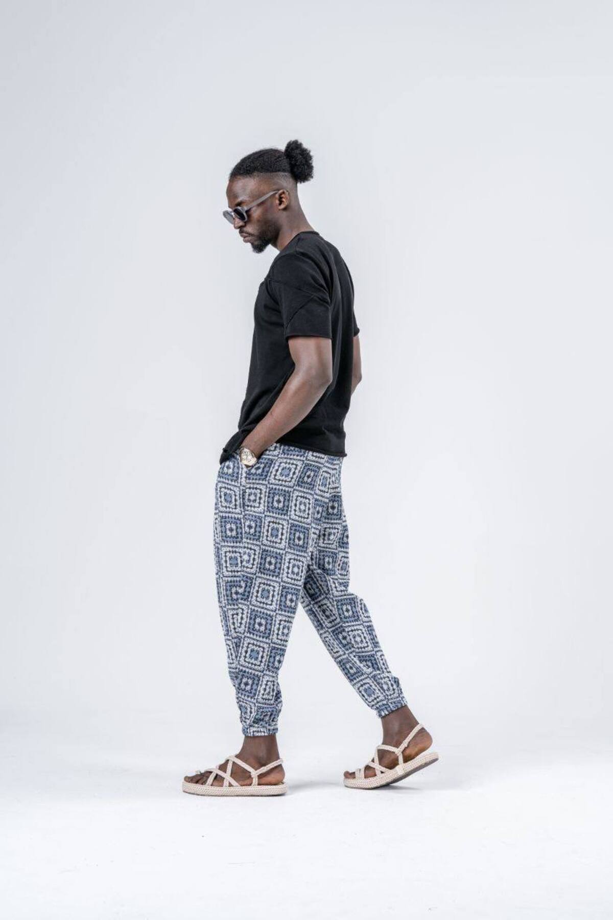 Erkek Yazlık Desenli Mavi Jogger Şalvar Pantolon Erkek Yazlık Desenli Mavi Jogger Şalvar Pantolon 8989-21 2XL