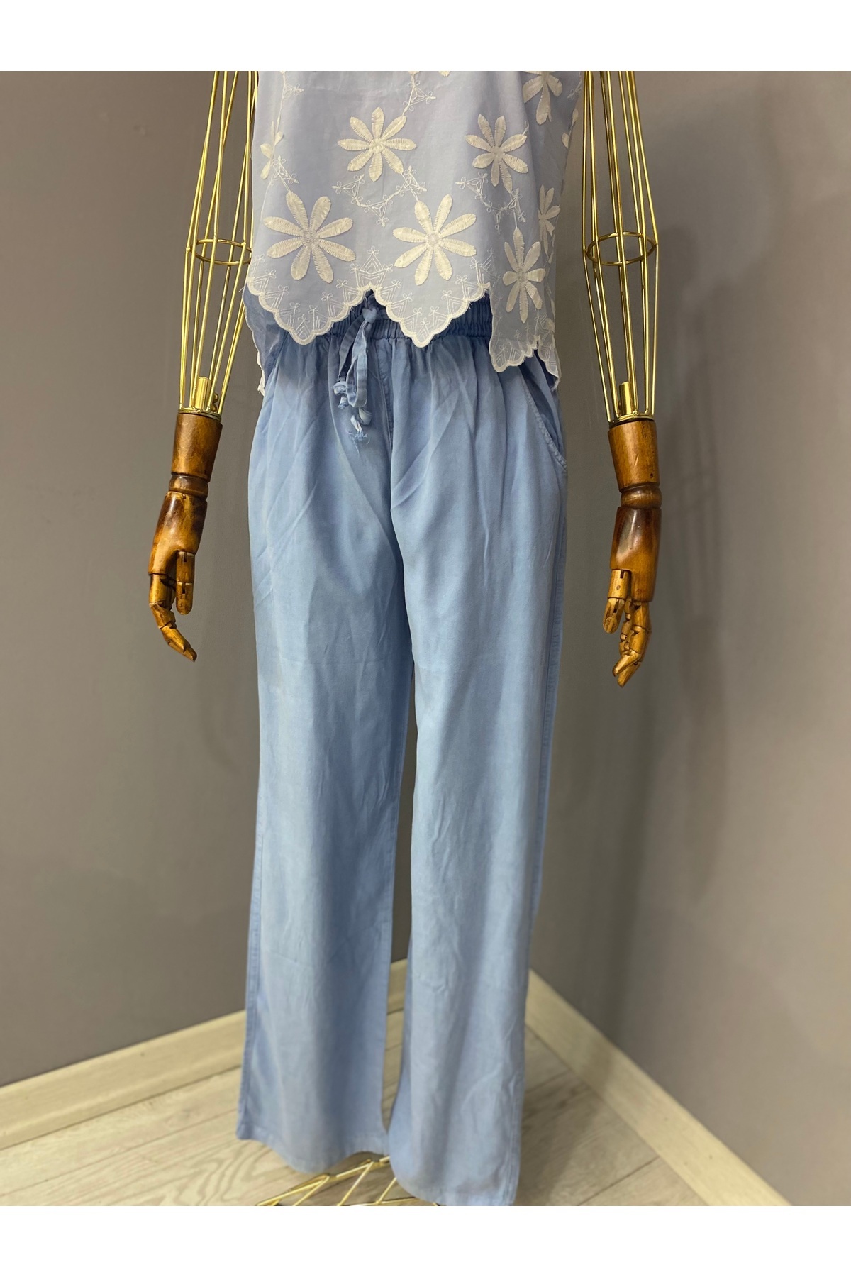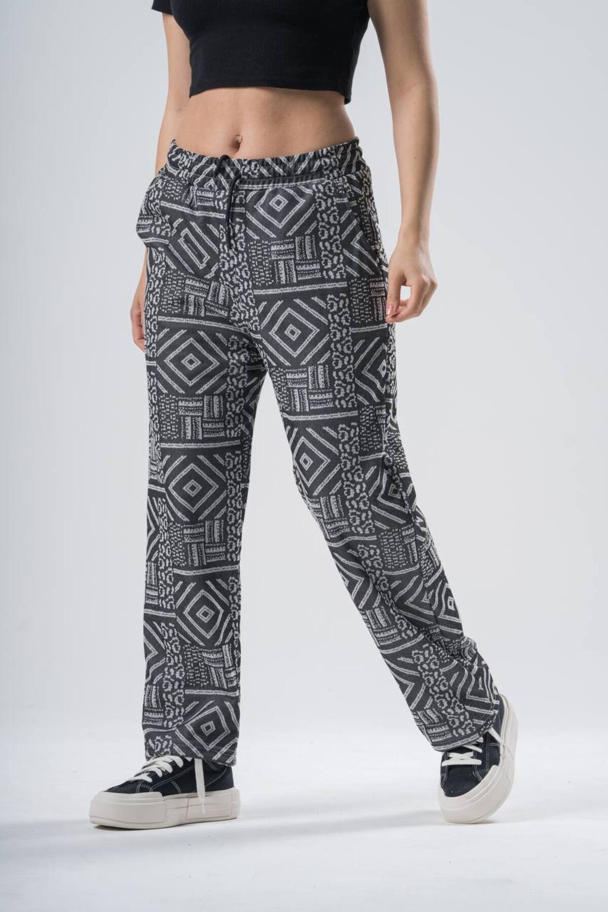 Kadın Desenli Beli Lastikli Füme Şalvar Pantolon Kadın Desenli Beli Lastikli Füme Şalvar Pantolon 8970-3 2XL