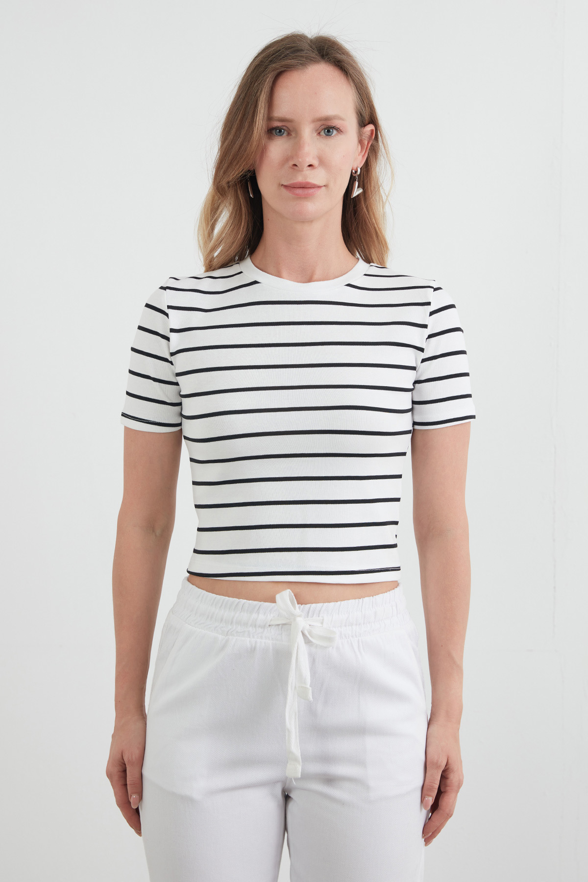 Basic Çizgili Crop Tişört Basic Çizgili Crop Tişört 25YGB4430128269 L