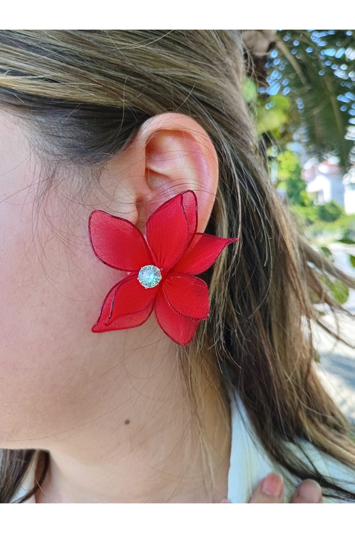Kırmızı Tül Çiçek Kadın Küpe Kırmızı Tül Çiçek Kadın Küpe BER.2246 تک سایز