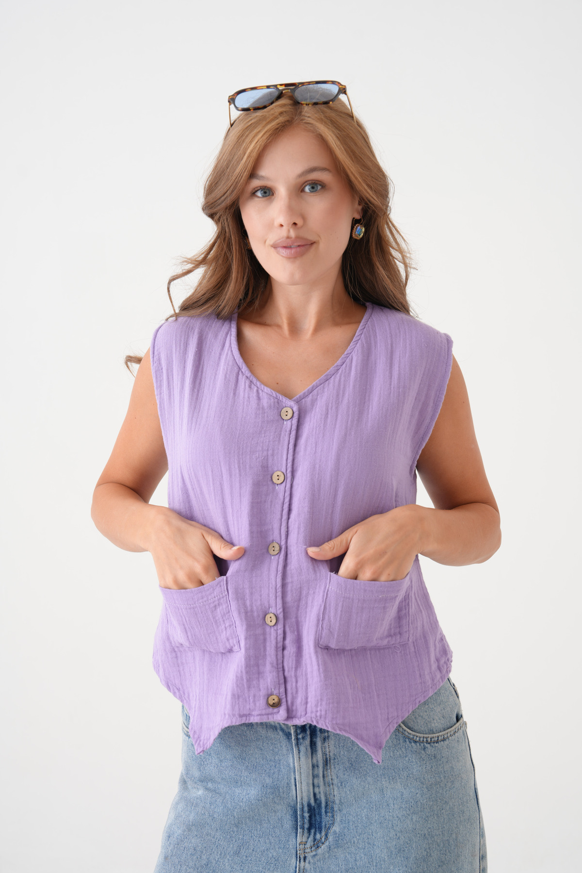 Kadın Müslin Cepken Yelek Bluz %100 Pamuk Önden Düğmeli (SM25) Kadın Müslin Cepken Yelek Bluz %100 Pamuk Önden Düğmeli (SM25) SMYELEK001 XL
